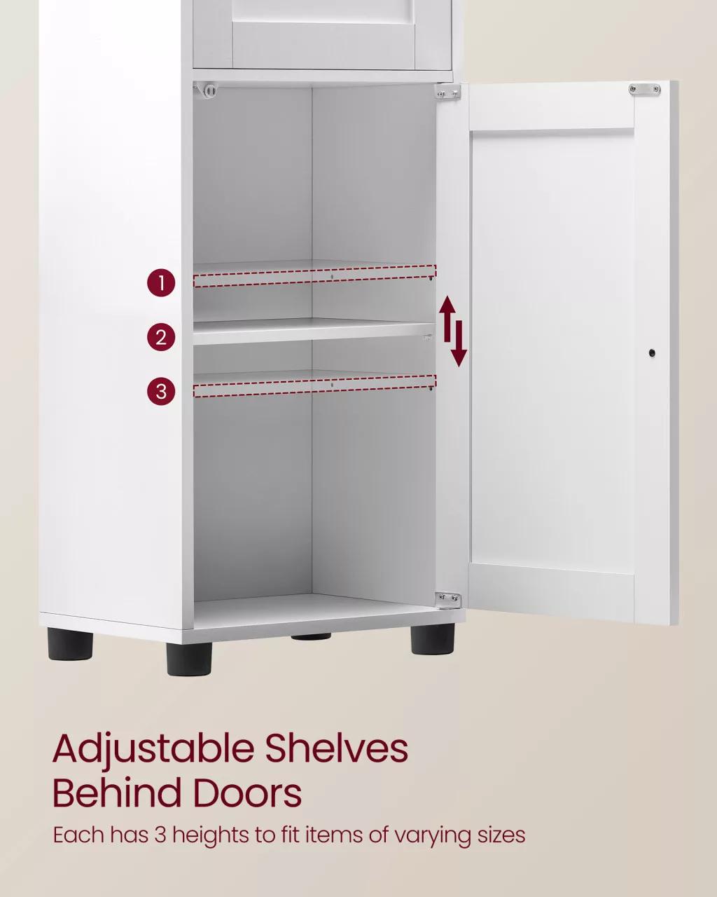 • Nedvességálló konstrukció: Vízálló műanyag lábak védik a bútort a fürdőszobai páratól és víztől