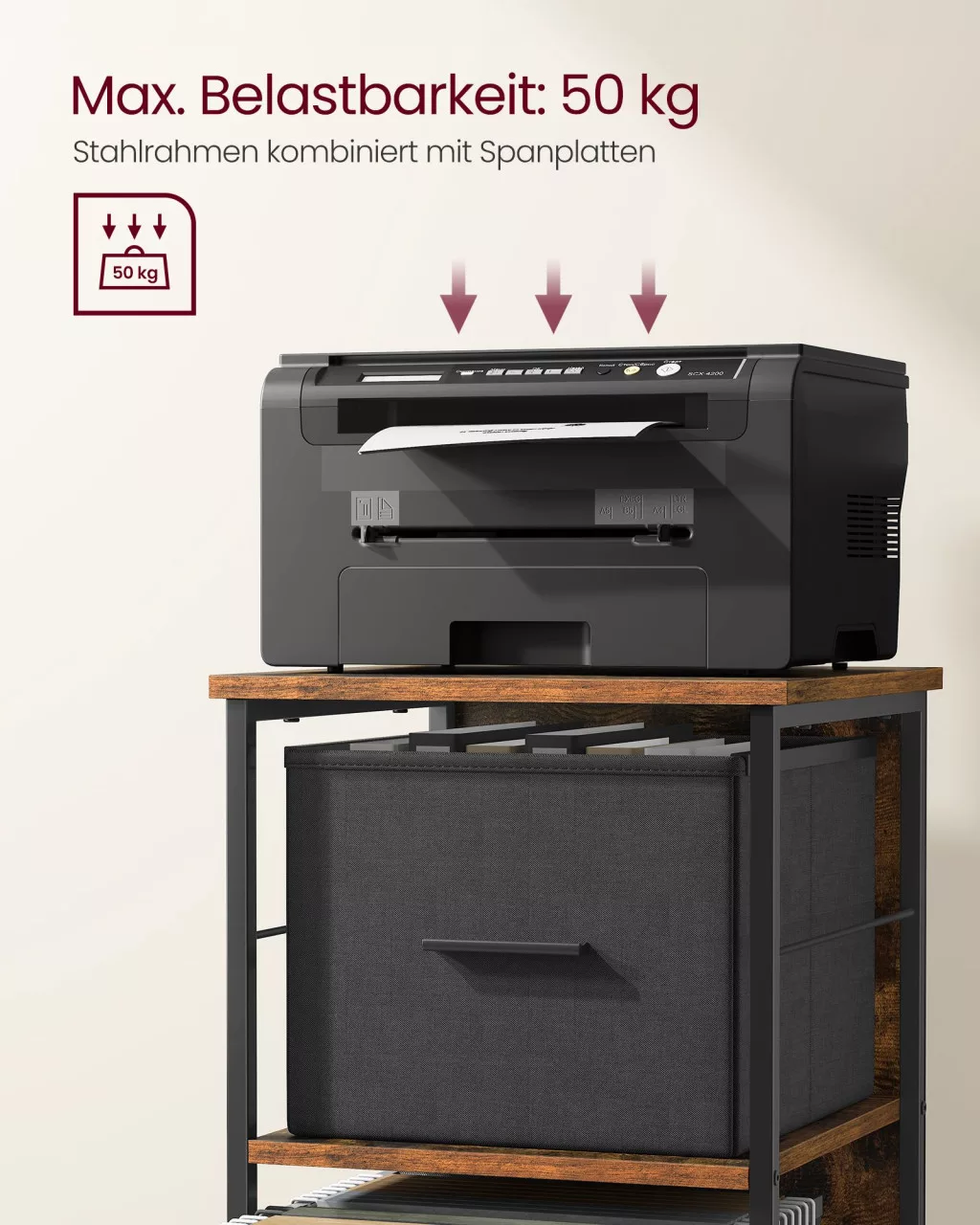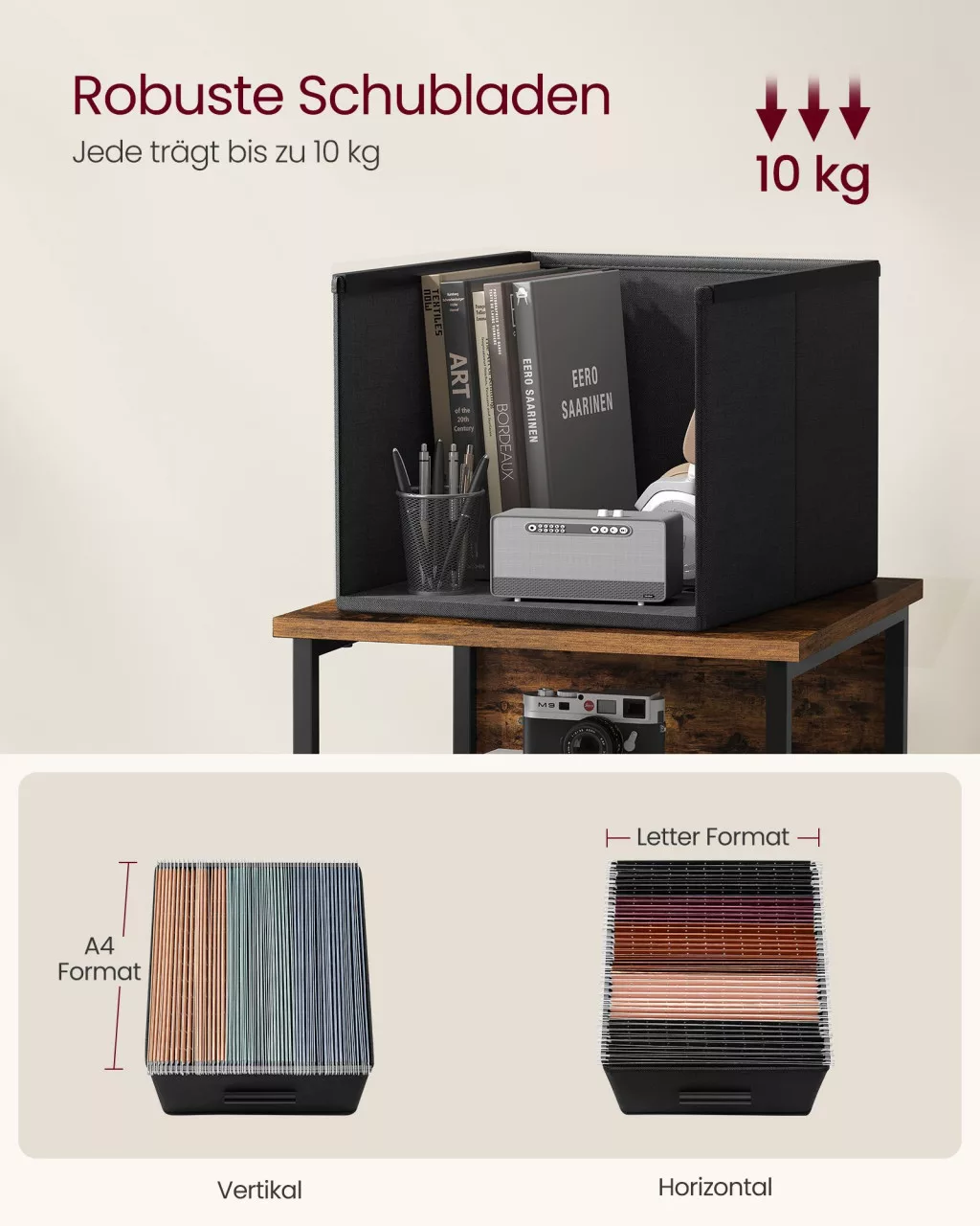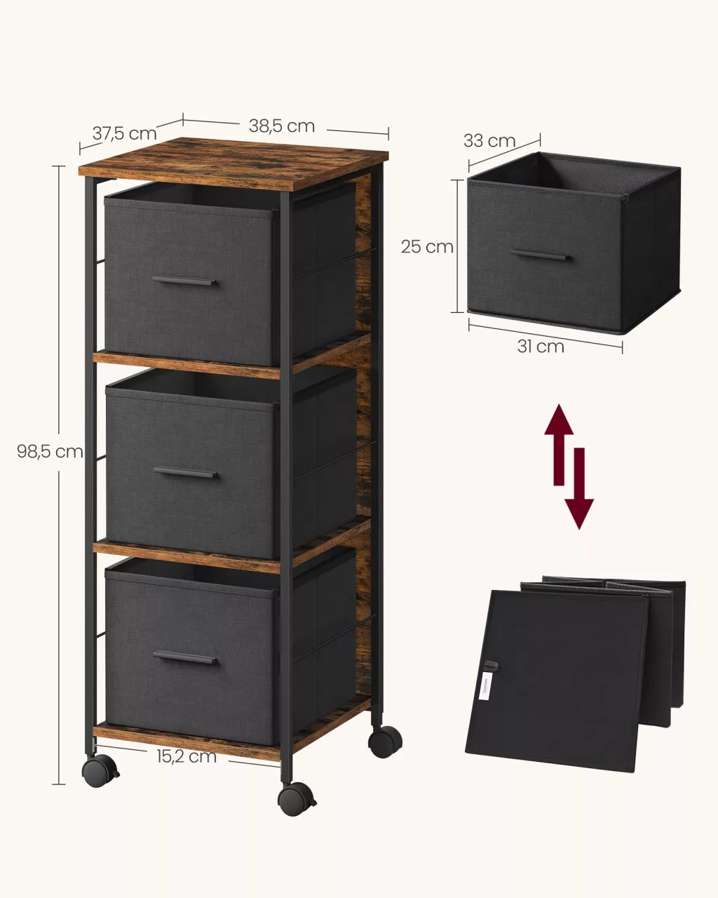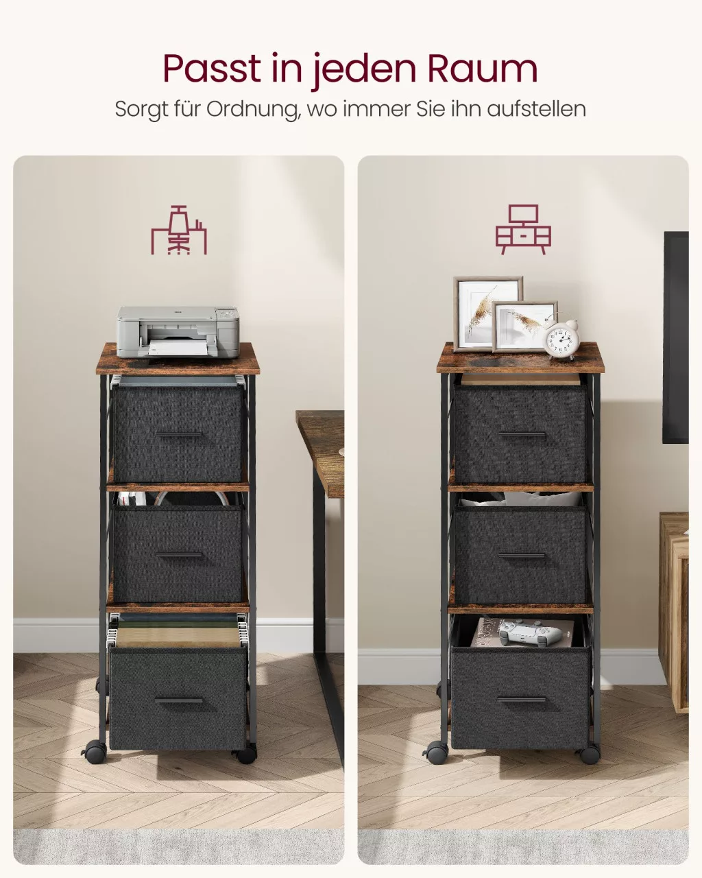 VASAGLE Mobil Irattartó Szekrény 3 Fiókkal Rusztikus Barna-Fekete