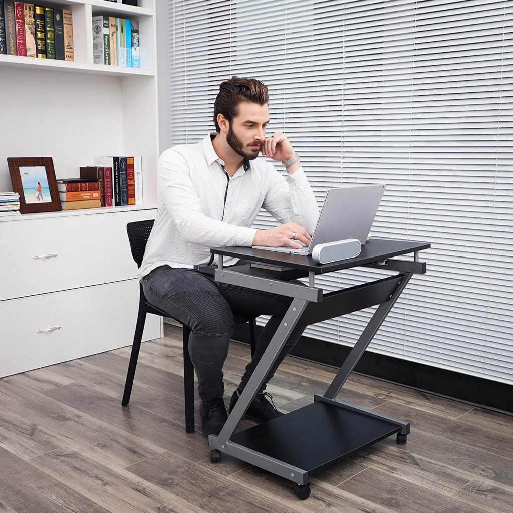 A kihúzható billentyűzettartó extra munkafelületet biztosít, miközben az alsó polc ideális tárolóhelyként szolgál. A fékezhető görgők lehetővé teszik az asztal stabil rögzítését a kívánt helyen.