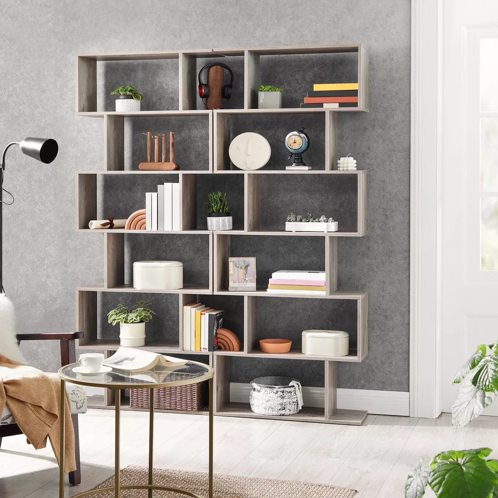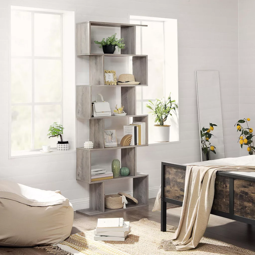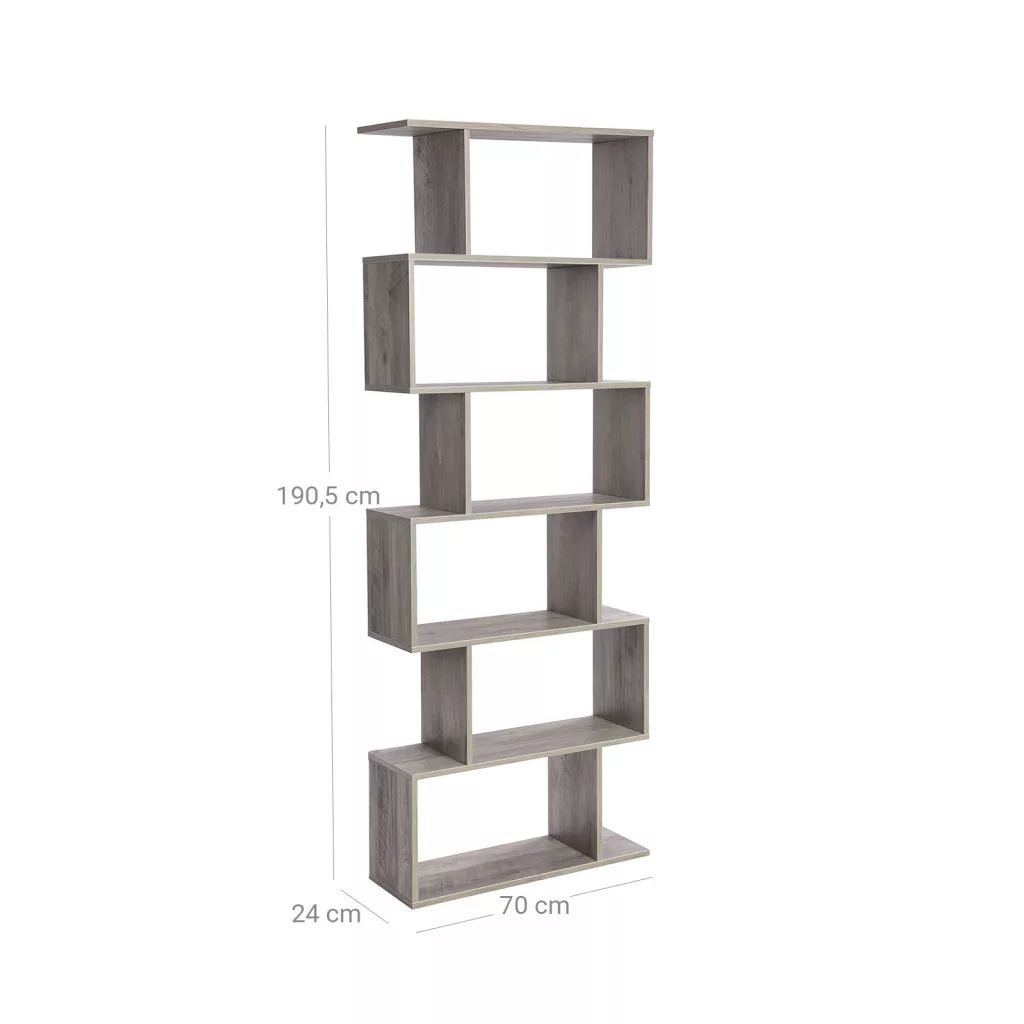 VASAGLE Modern 6-szintes Könyvespolc Térelválasztó Szürke