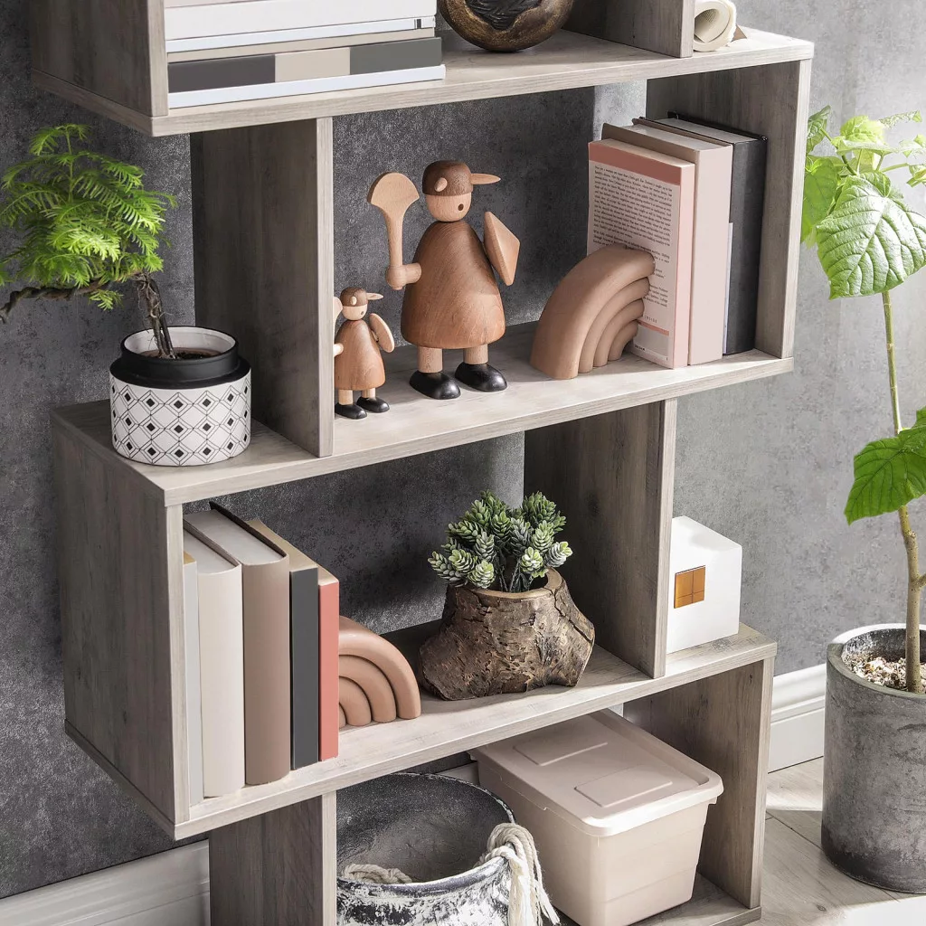 Ez a modern vonalvezetésű, 6 szintes könyvespolc tökéletes megoldást nyújt a tárolásra és térelválasztásra egyaránt. A zigzag kialakítású polcrendszer nem csak praktikus tárolóhelyként szolgál, de izgalmas dizájnelemként is működik otthonában. Az egyedi kialakítású rekeszek ideálisak könyvek, növények, dísztárgyak és személyes holmik elrendezésére.