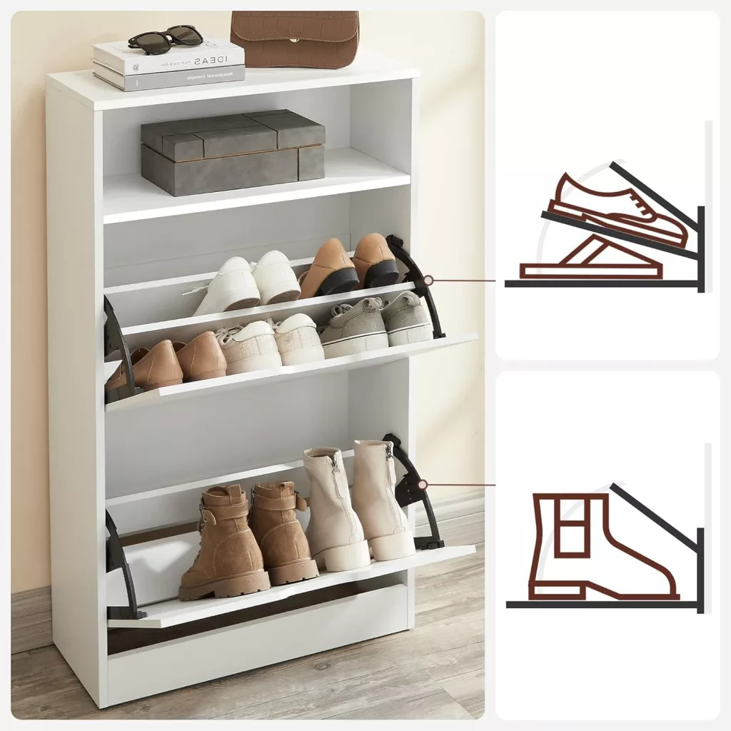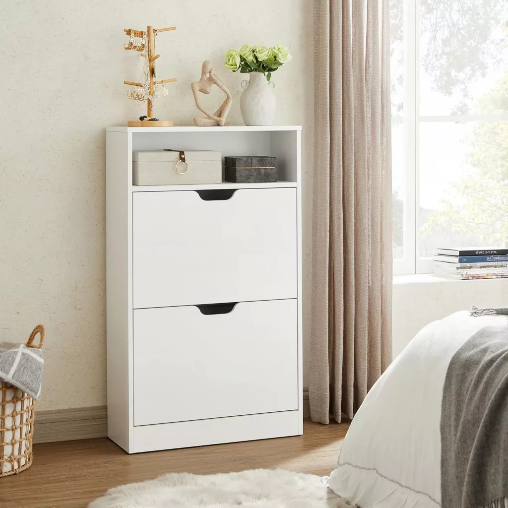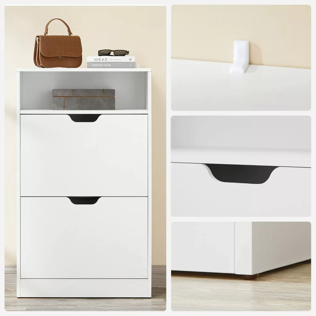 VASAGLE Modern Cipősszekrény 2 Rekesszel Fehér