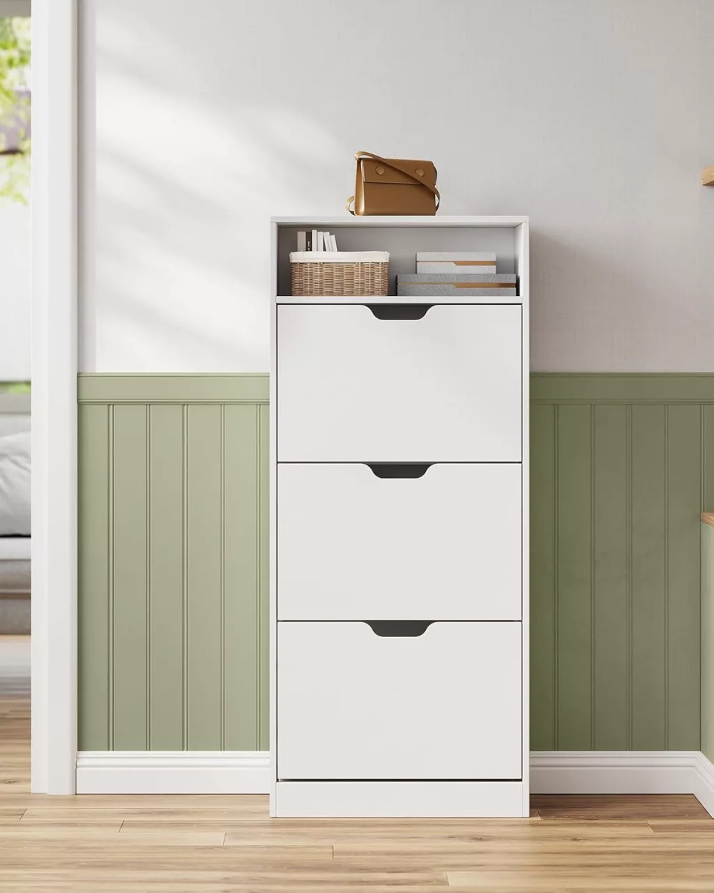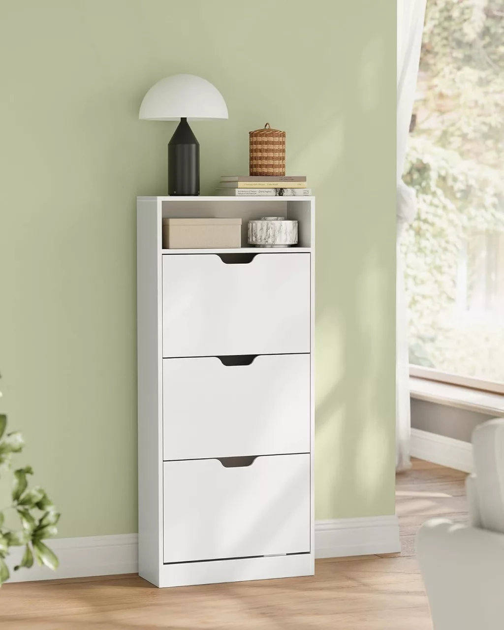 VASAGLE Modern Cipősszekrény 3 Ajtóval Felhőfehér