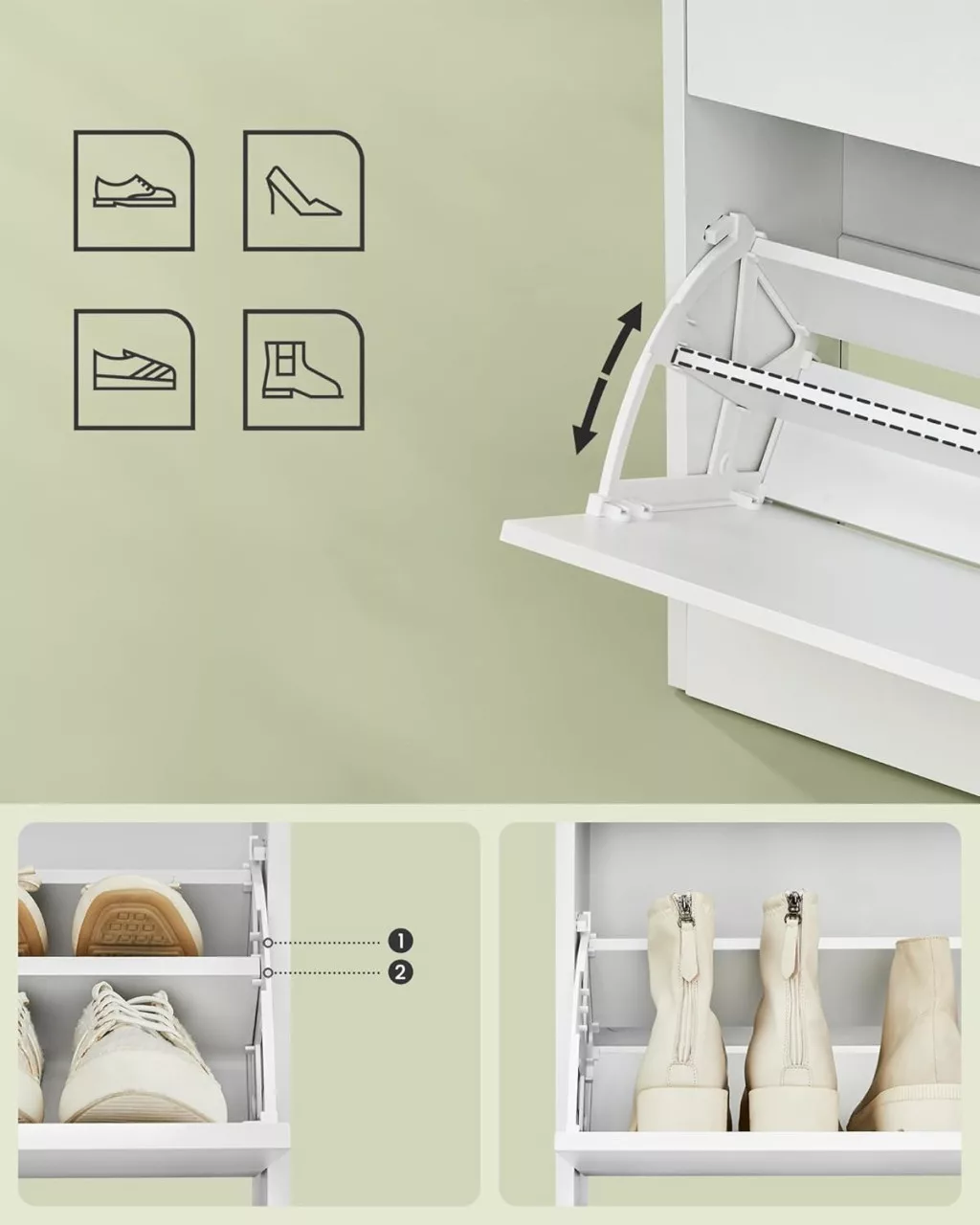 • Tágas tárolókapacitás 14-18 pár cipő számára