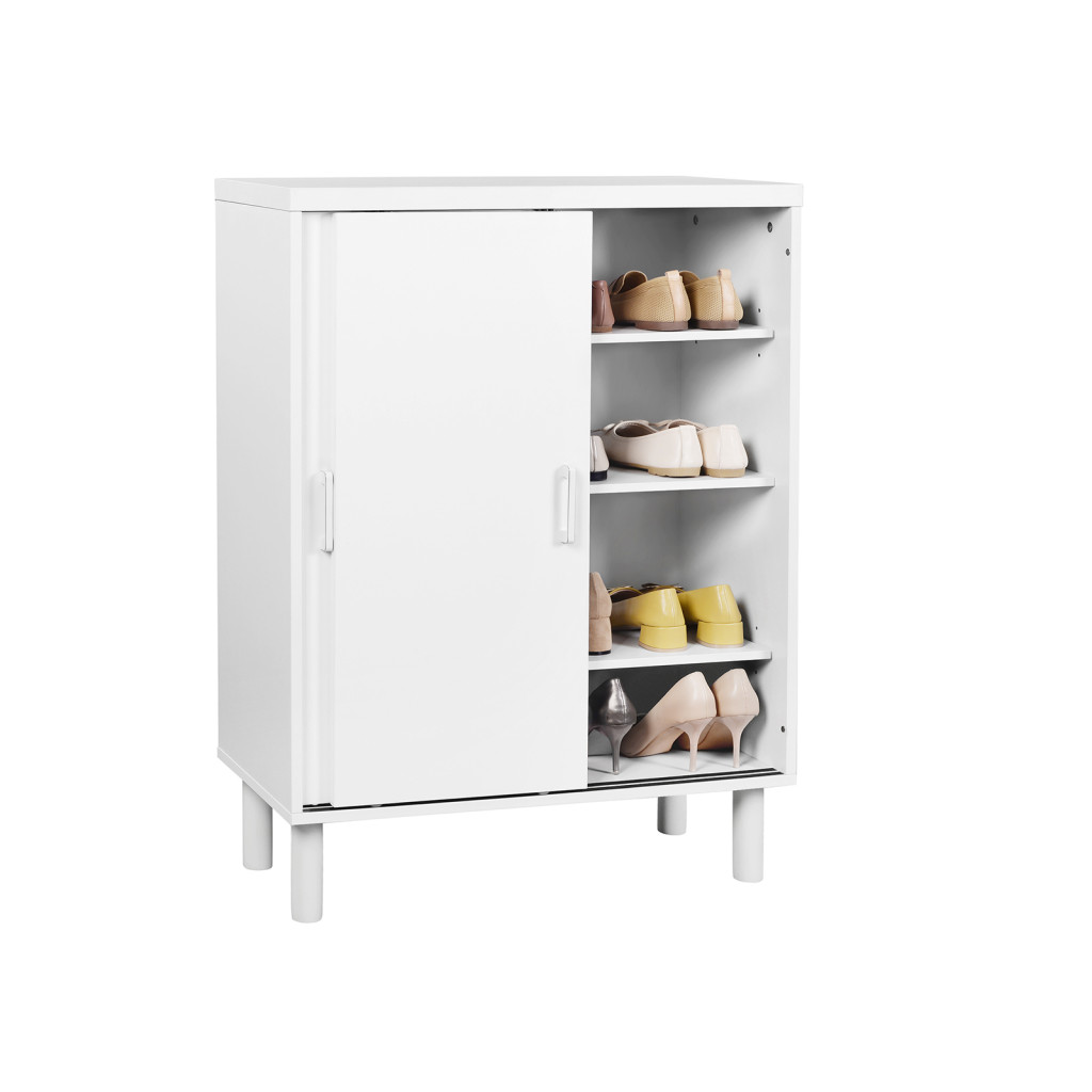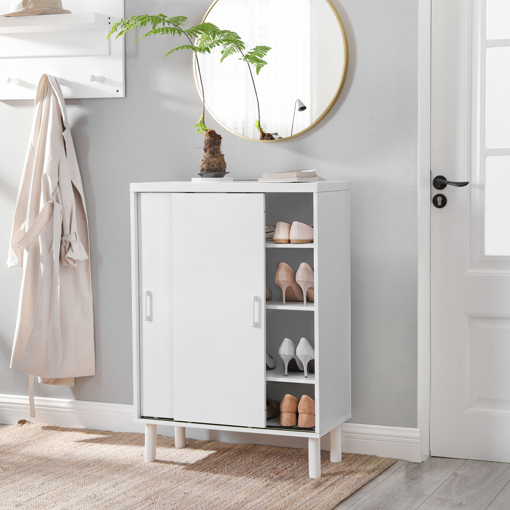 Elegáns, kompakt cipősszekrény állítható polcokkal, amely tökéletes megoldást nyújt az előszobai tároláshoz, mindezt letisztult skandináv dizájnnal.