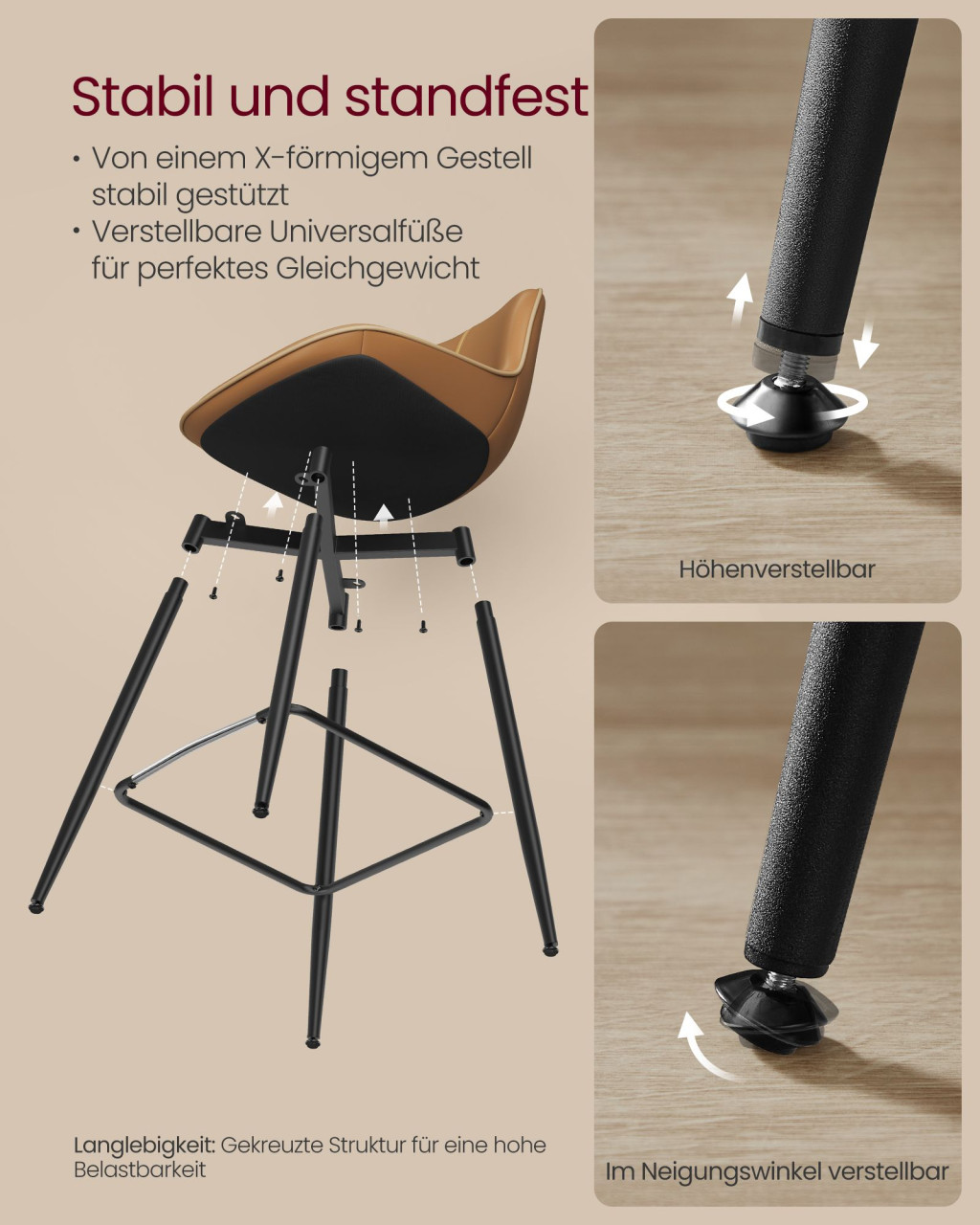 VASAGLE Modern Ergonomikus Bárszék Szett Karamell Műbőr Kárpitozással