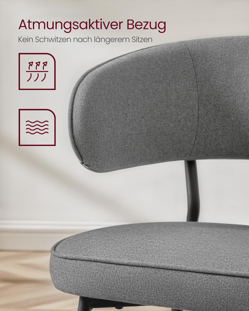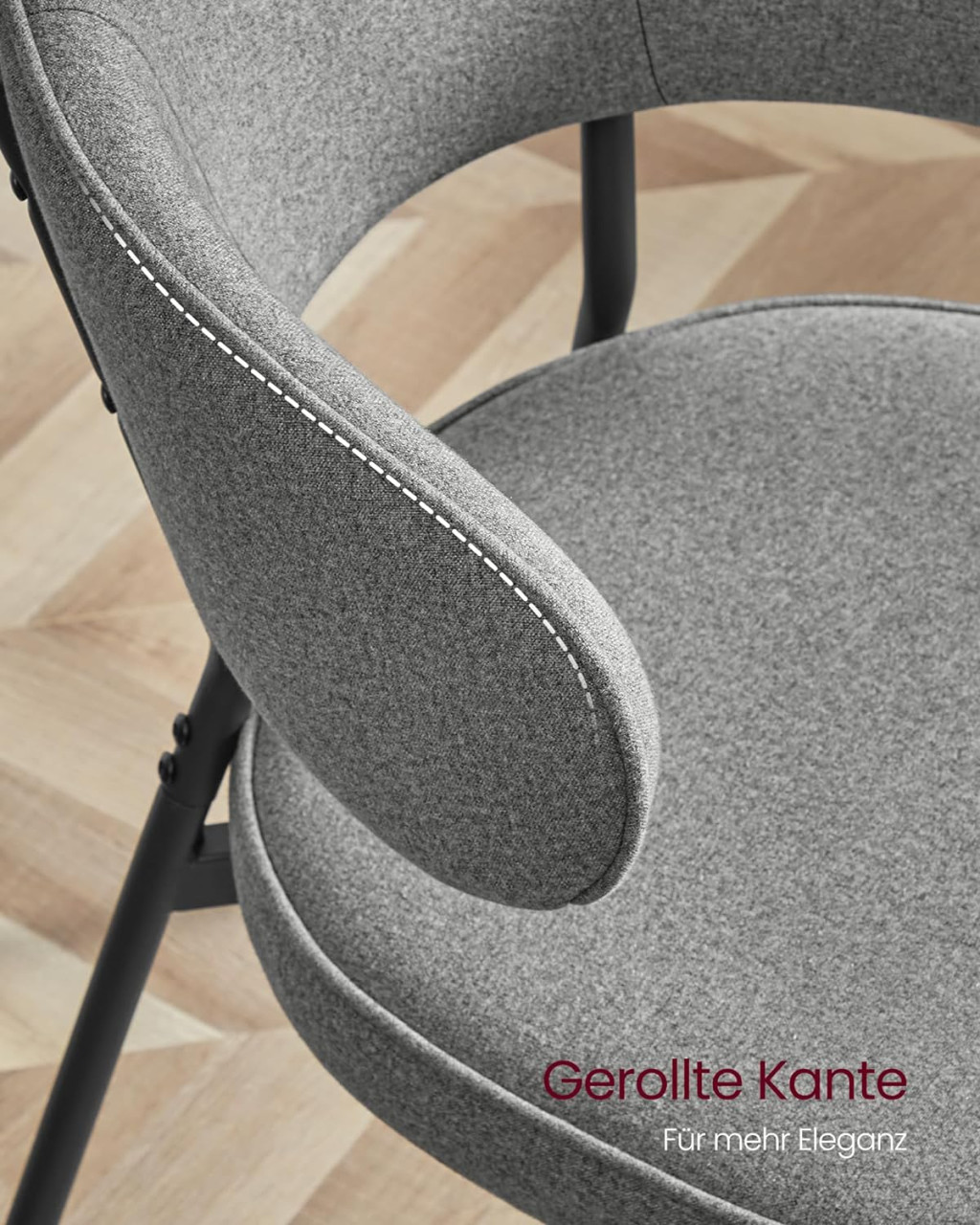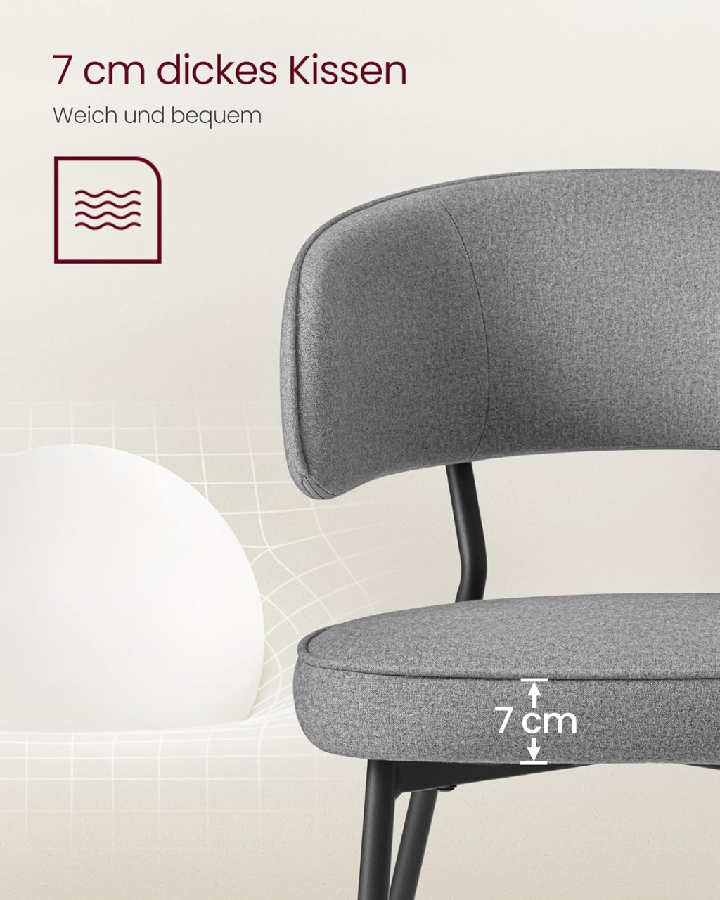 Ez a két darabos VASAGLE étkezőszék szett ötvözi a modern dizájnt és a praktikus kényelmet. A tiszta vonalvezetés, a gördülő élek és a kivágott háttámla egyedi megjelenést kölcsönöz, míg a 7 cm vastag ülőpárna és az ergonomikus kialakítás hosszan tartó kényelmet biztosít.
