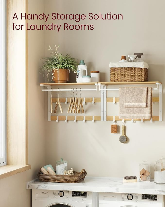 VASAGLE Modern Fali Fogas Polccal Tölgy-Fehér 10 Akasztóval