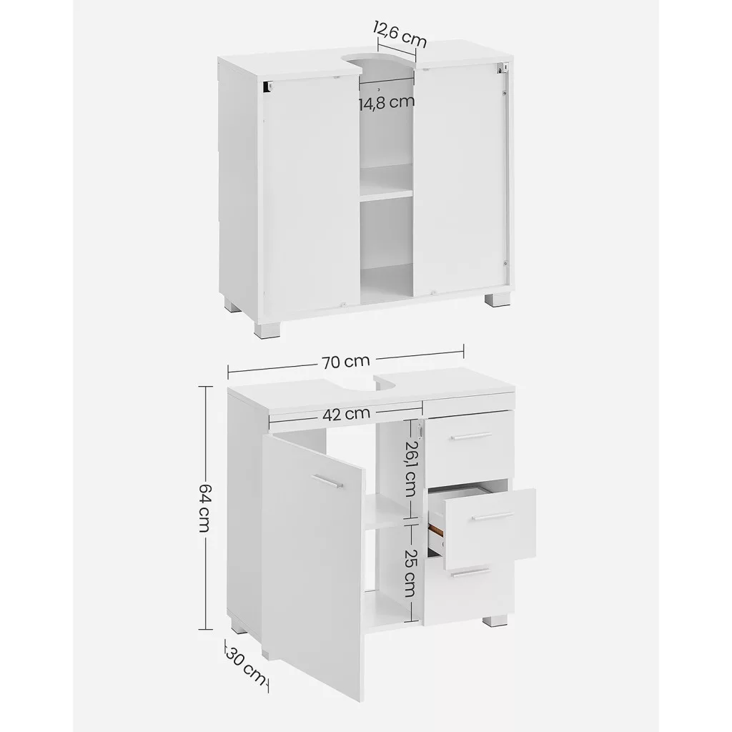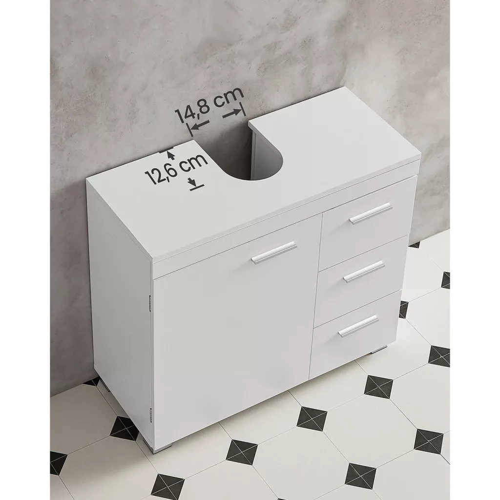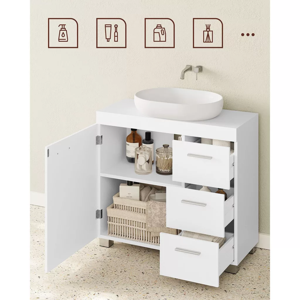 VASAGLE Modern Fürdőszobai Szekrény 3 Fiókkal és Ajtóval Fehér