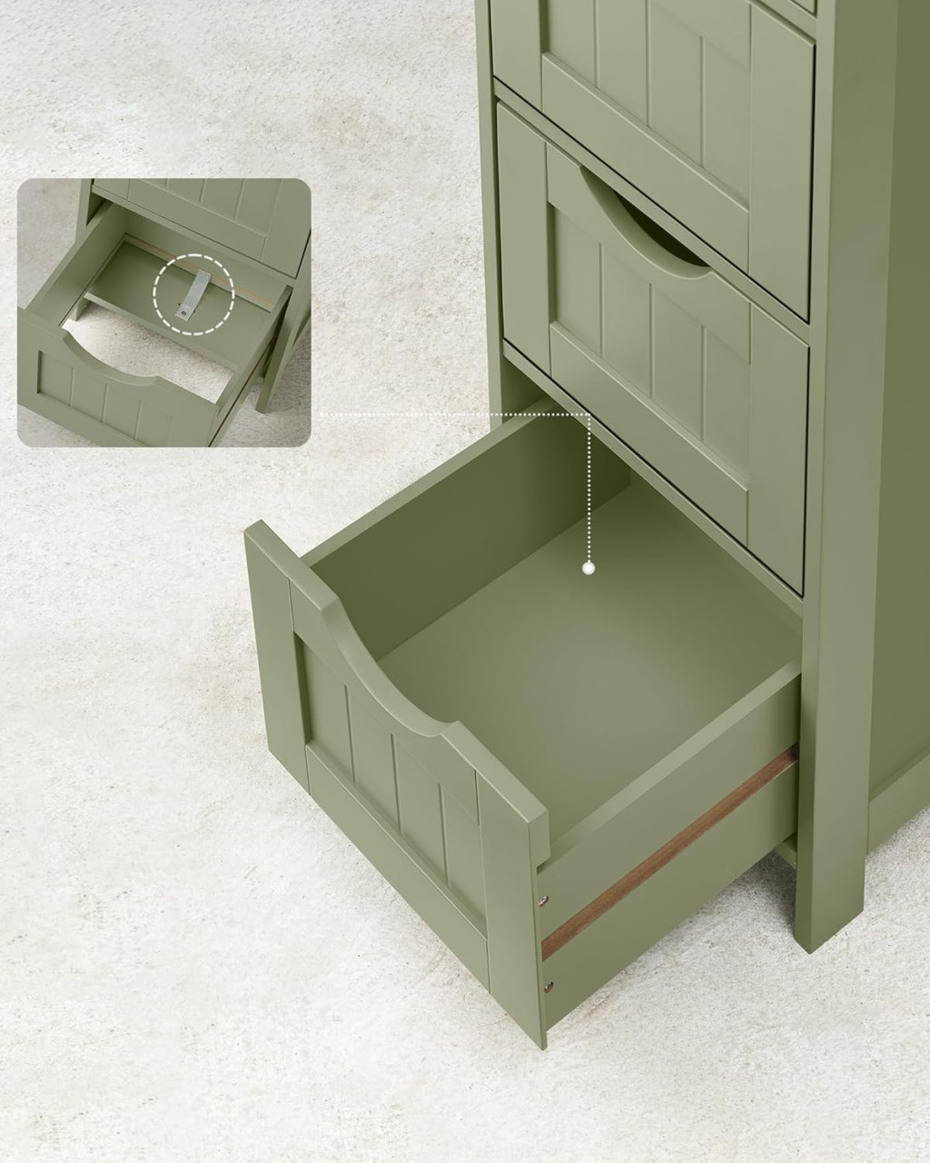 VASAGLE Modern Fürdőszobai Szekrény 4 Fiókos Babérzöld MDF