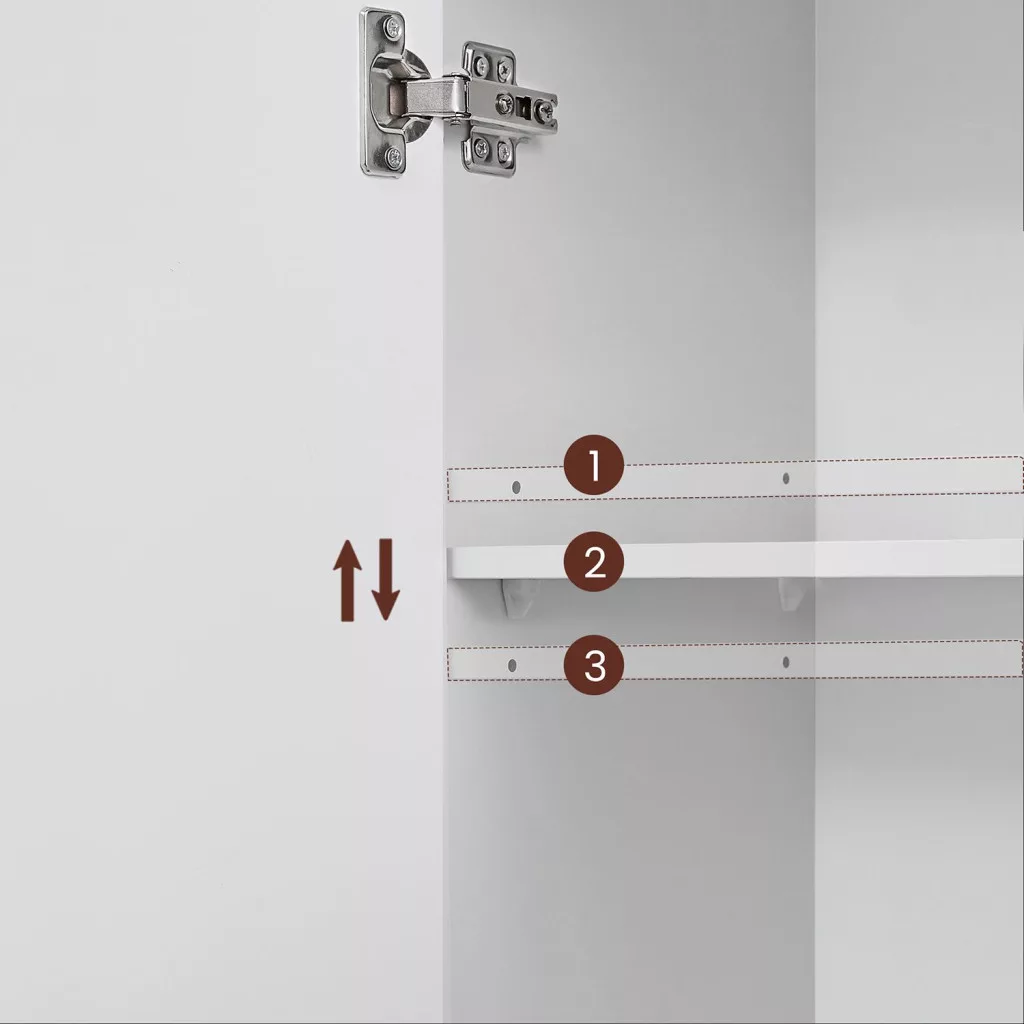 Elegáns fehér fürdőszobai szekrény állítható polccal és puha záródású ajtókkal, amely tökéletes megoldást nyújt a fürdőszobai rendszerezéshez.