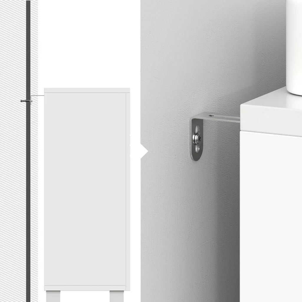Ez a modern VASAGLE fürdőszobai szekrény egyesíti a praktikus tárolást az elegáns megjelenéssel. A fehér, bordázott ajtófrontok és a minőségi fém fogantyúk tökéletesen illeszkednek bármilyen fürdőszobai környezetbe. Az állítható polc lehetővé teszi a belső tér személyre szabását, míg a U-alakú kivágás megkönnyíti a mosdó csatlakoztatását.