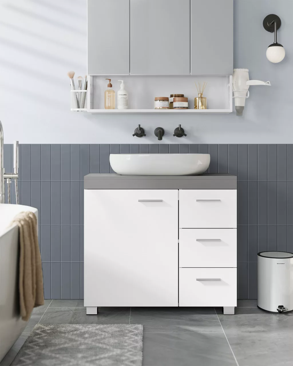 VASAGLE Modern Fürdőszobai Szekrény Fehér-Szürke MDF 3 Fiókos
