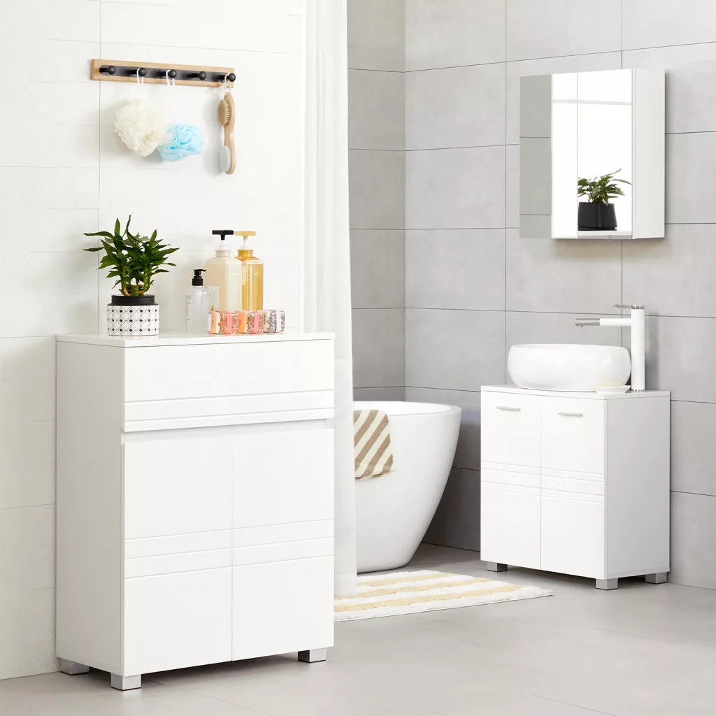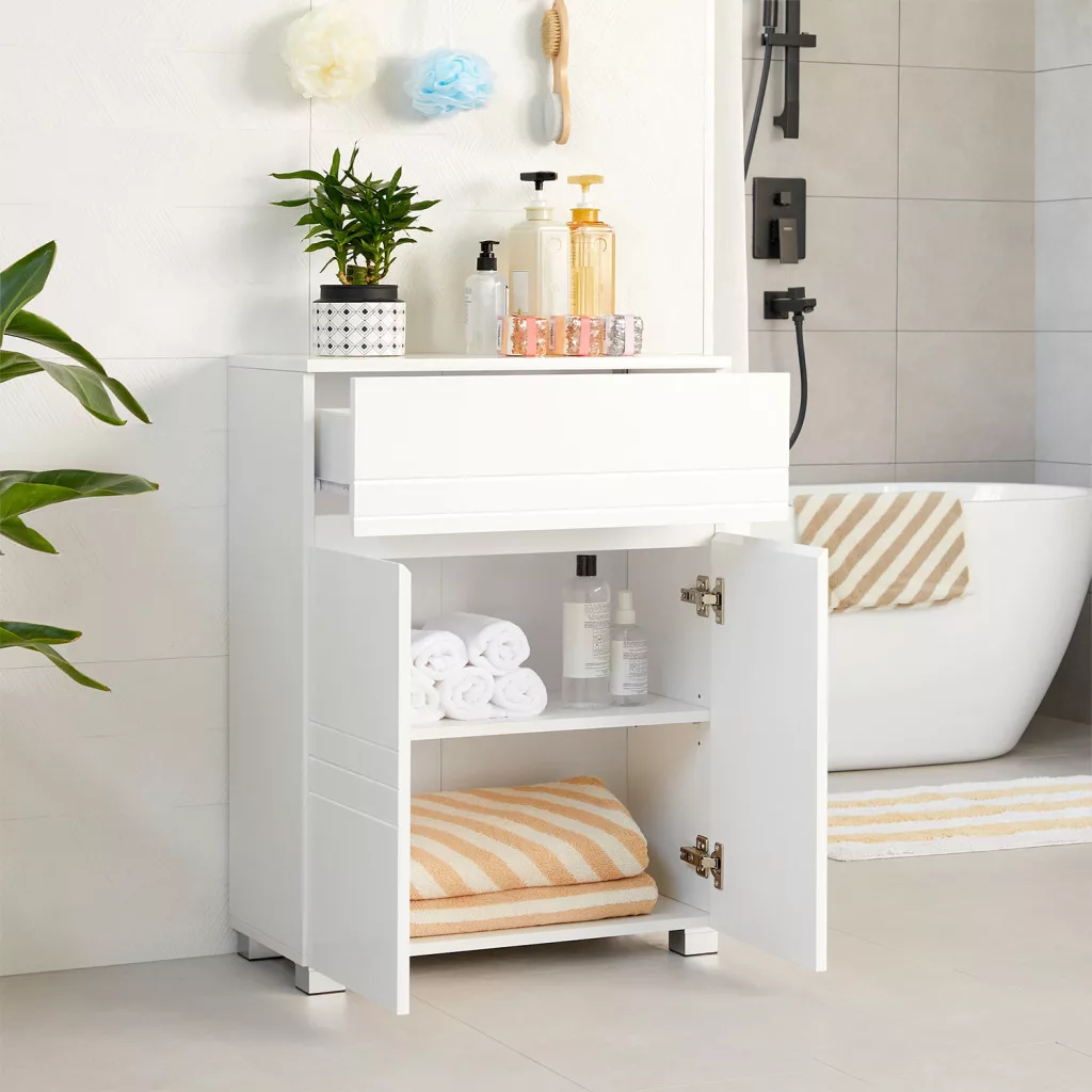 VASAGLE Modern Fürdőszobai Szekrény Fiókkal és Állítható Polccal Fehér
