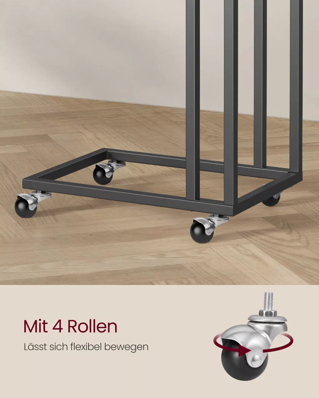 VASAGLE Modern Görgős Kisasztal Fekete Acélvázzal