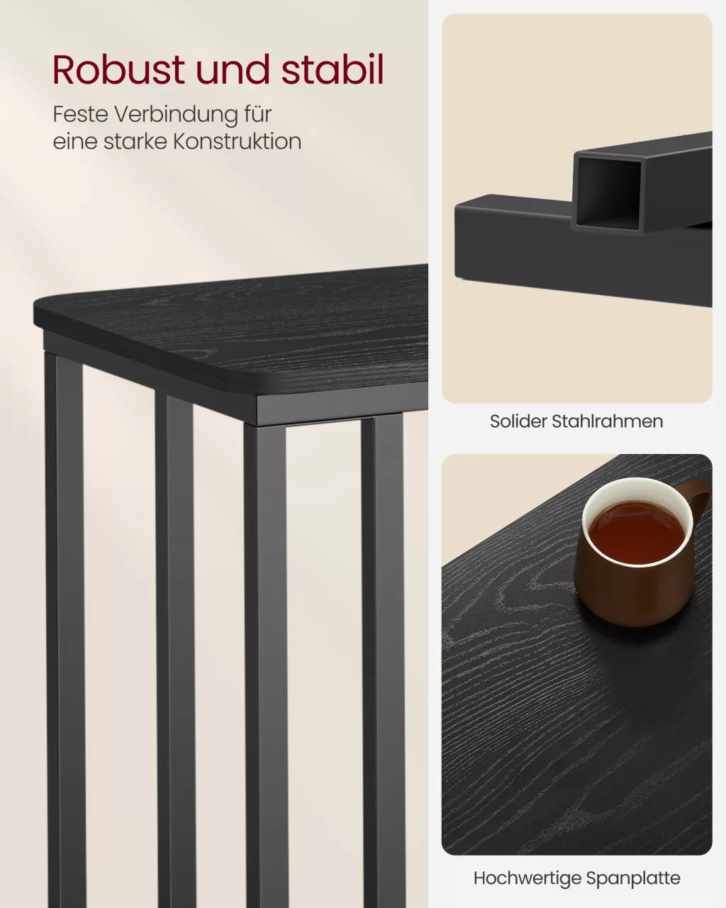• Stabil szerkezet: 25 kg teherbírás, masszív acélváz és tartós asztallap