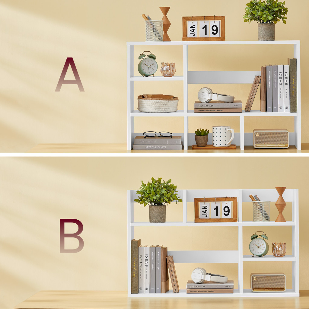 VASAGLE Modern Íróasztali Polc Rendszerező Fehér Fából 6 Rekesszel