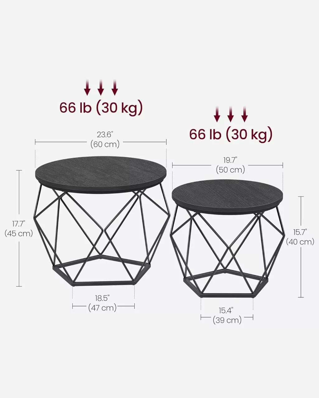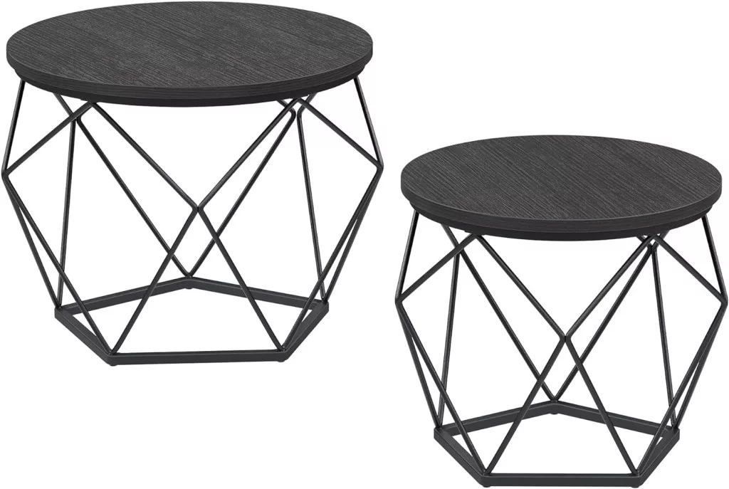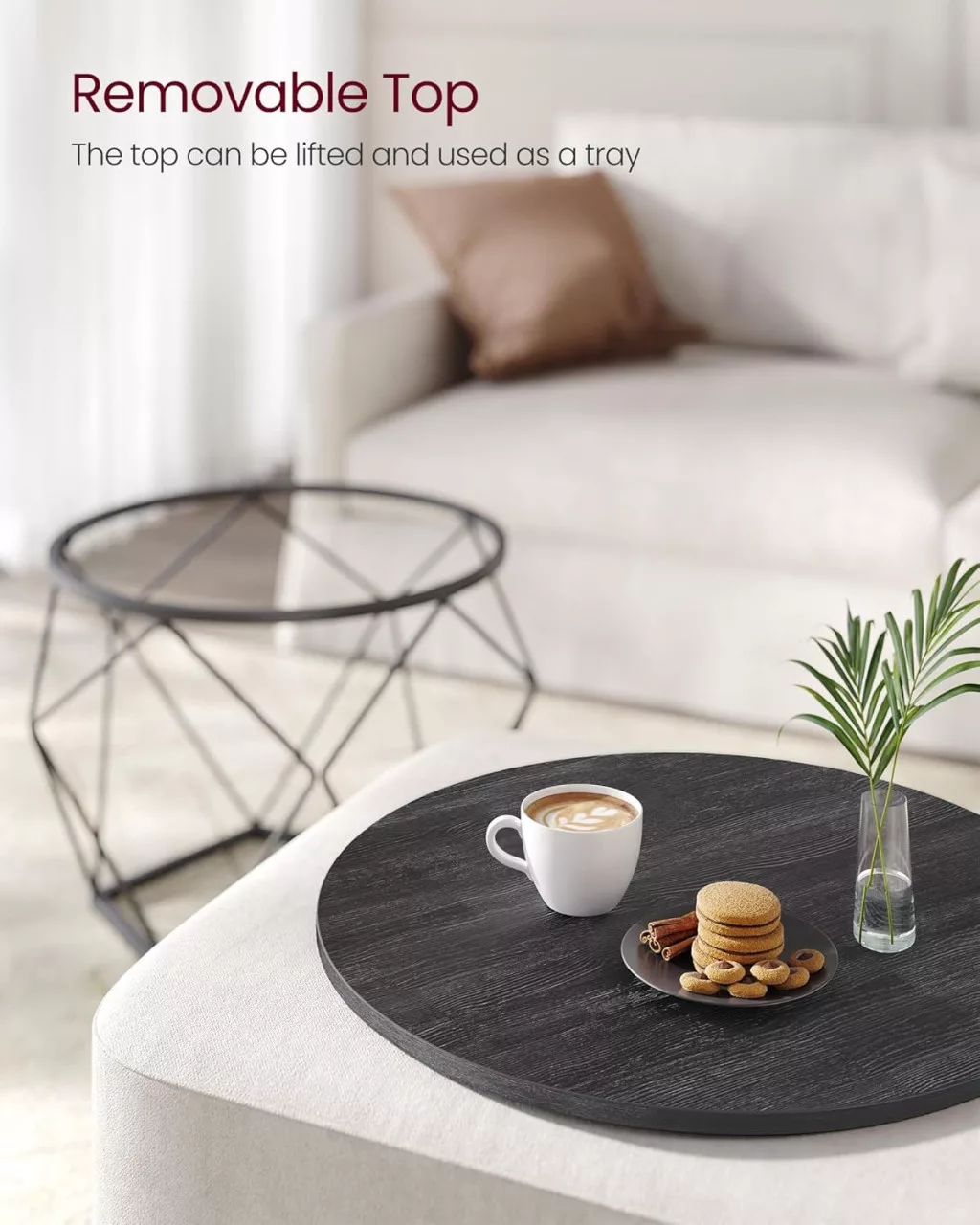 VASAGLE Modern Kerek Dohányzóasztal Szett Levehető Asztallappal Antracit-Fekete