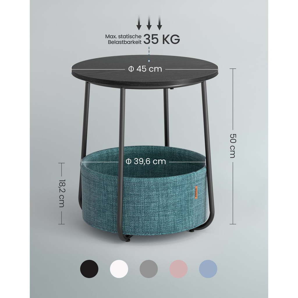 VASAGLE Modern Kerek Kisasztal Tárolókosárral Fekete-Türkiz