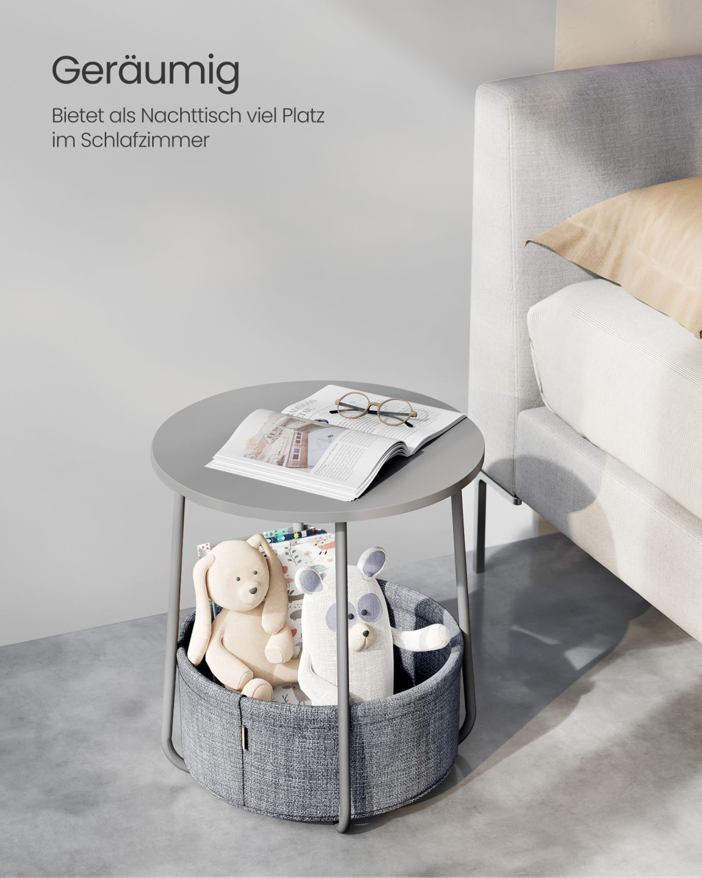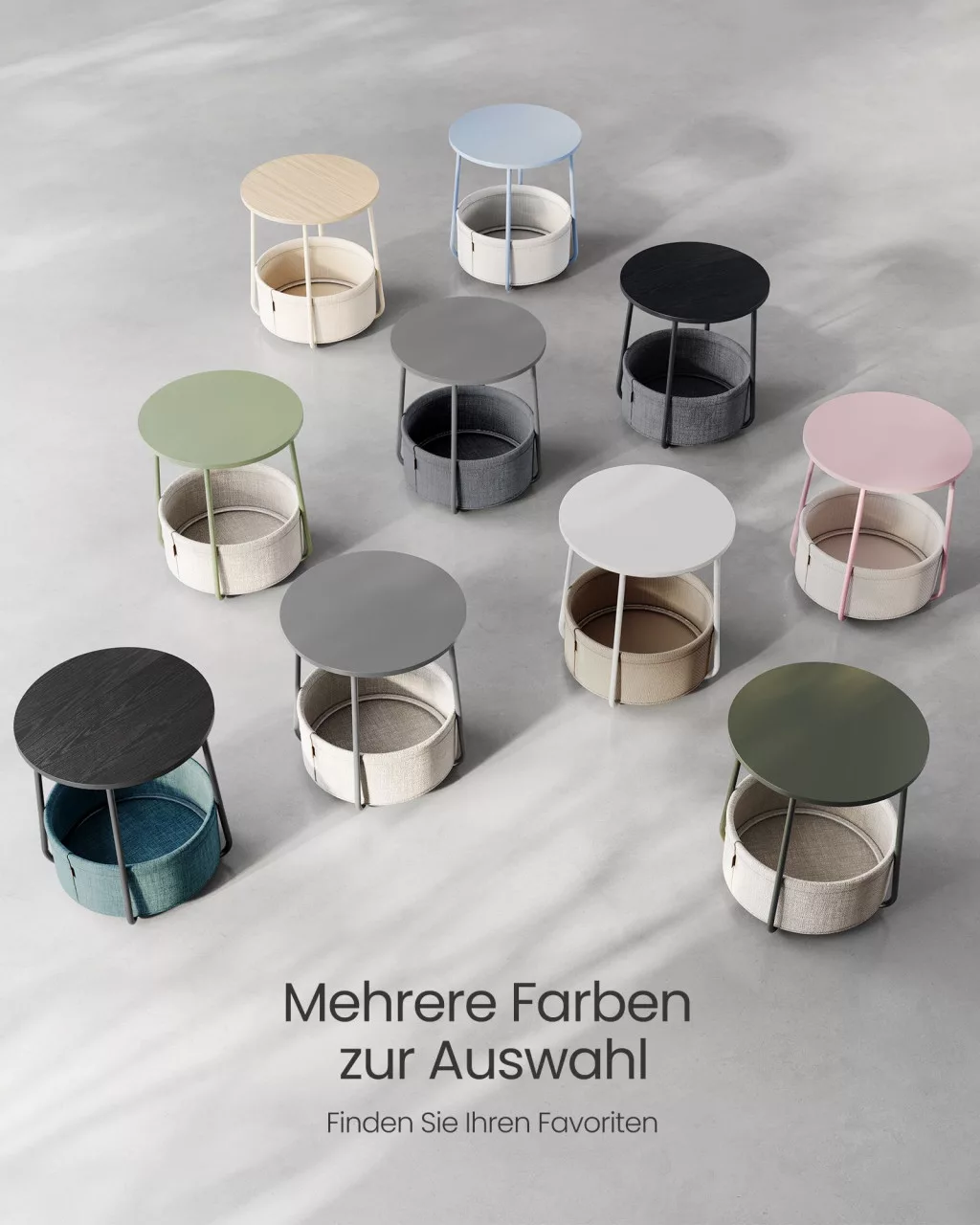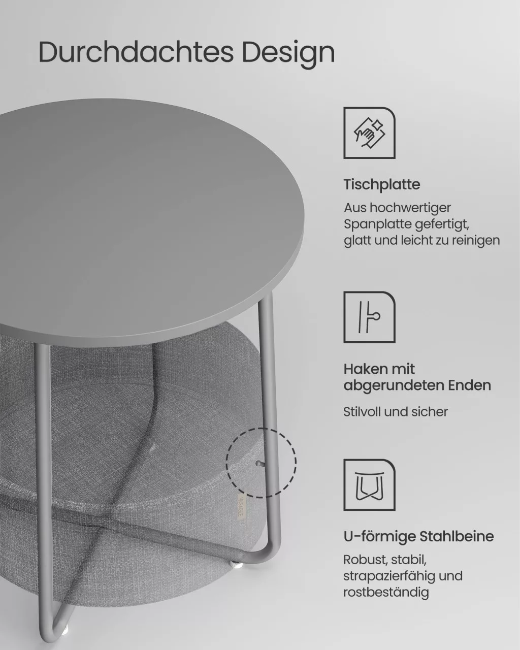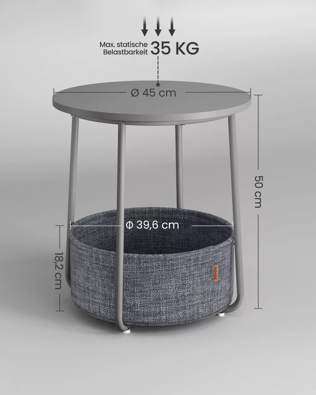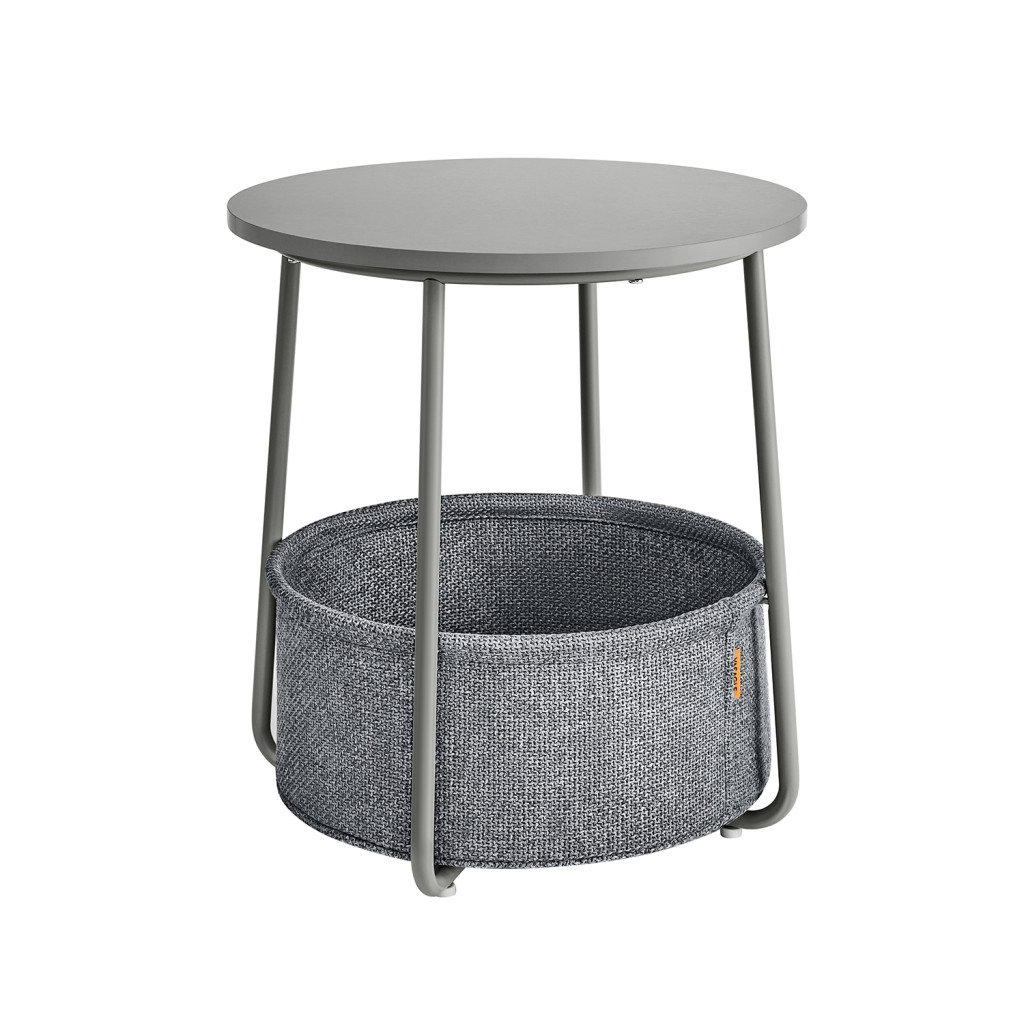 VASAGLE Modern Kerek Kisasztal Tárolókosárral Galambszürke