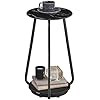 VASAGLE Modern Kerek Kisasztal Üveglapos Márványmintás Fekete
