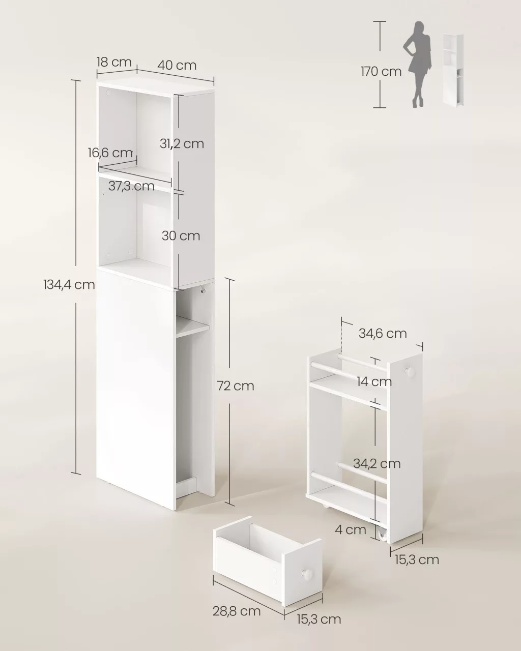 Ez a karcsú, mégis praktikus fürdőszobai szekrény tökéletes megoldást nyújt a szűk terek optimális kihasználására. A 40 cm mély és mindössze 18 cm széles kialakítás lehetővé teszi, hogy még a legkisebb fürdőszobában is elegáns tárolási megoldást teremtsen.