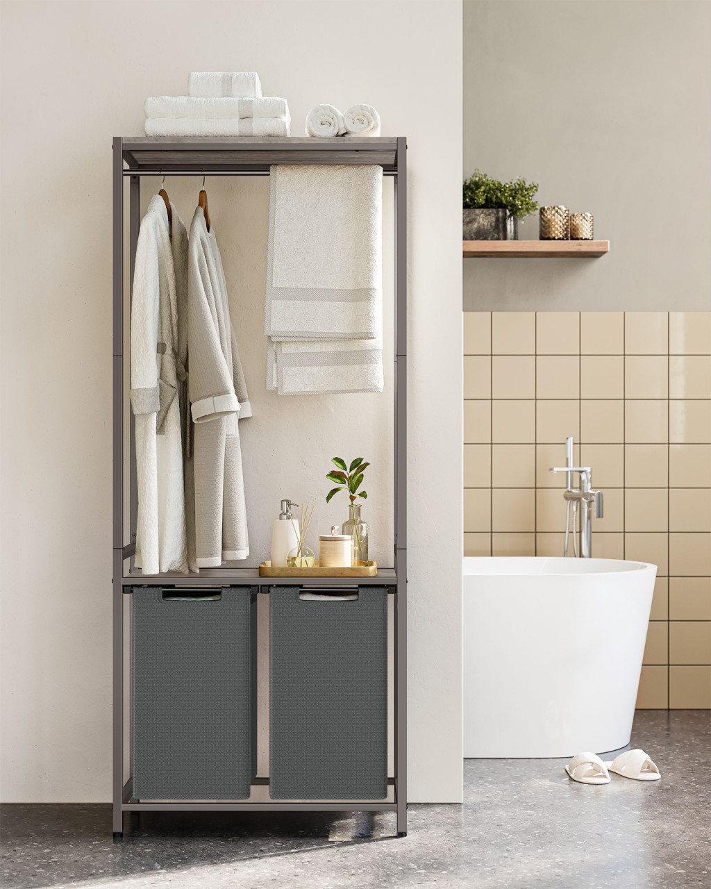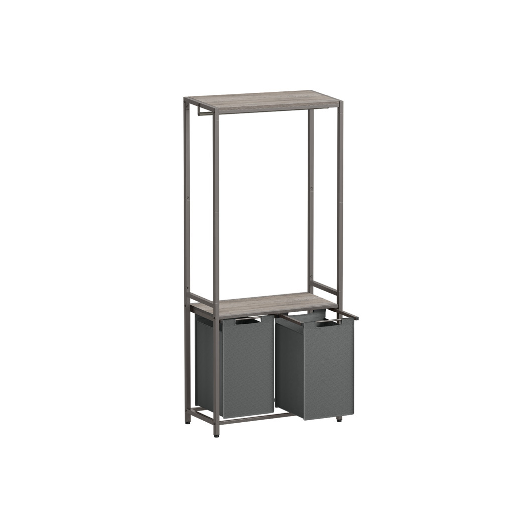 VASAGLE Modern Kétrészes Szennyestartó Állvány Akasztórúddal Szürke