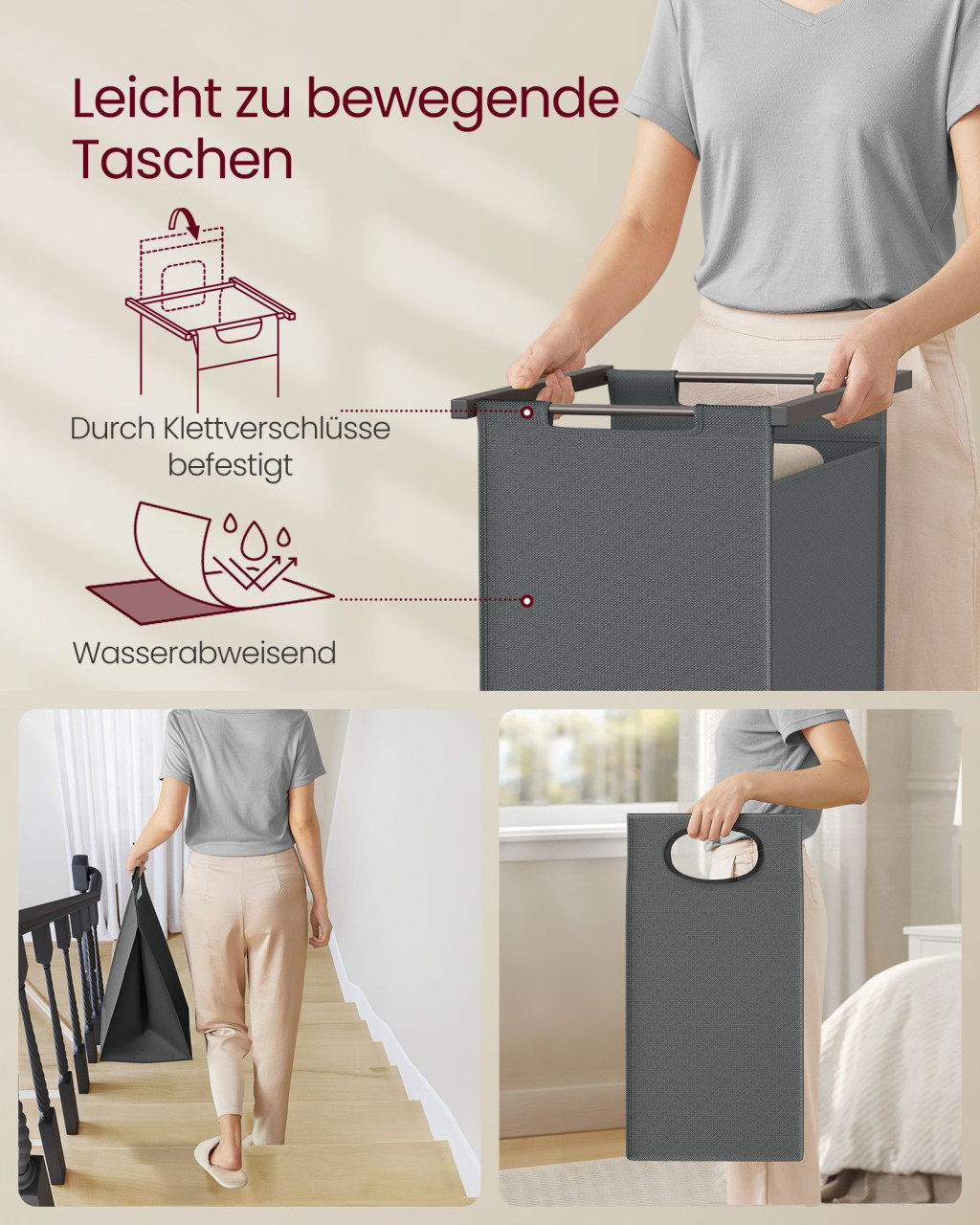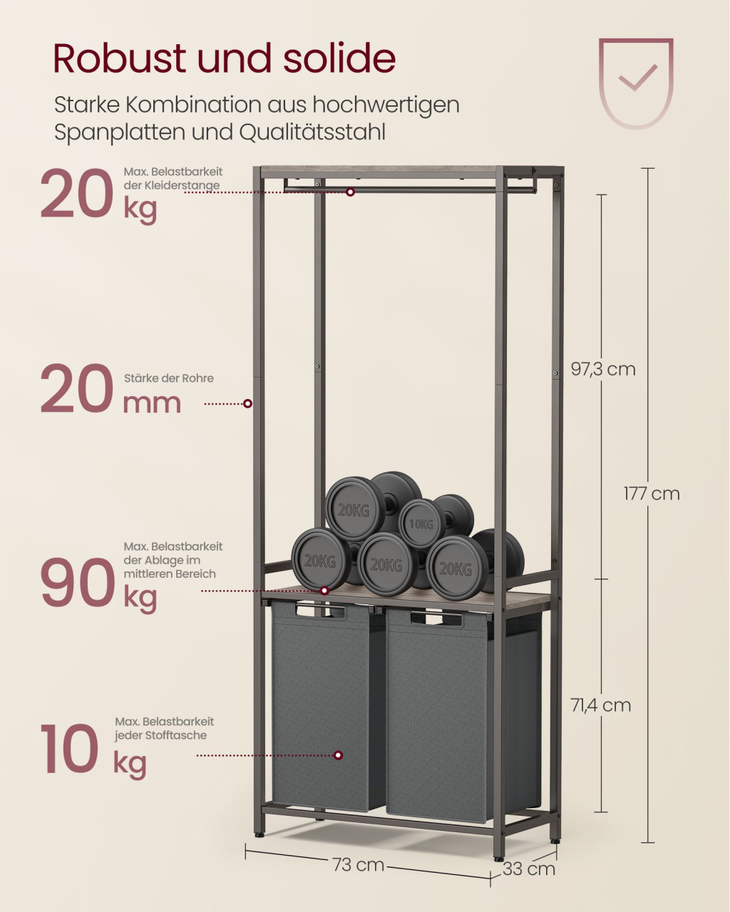 Ez a modern kialakítású szennyestartó állvány forradalmasítja a mosodai teendők szervezését. A két kivehető, vízlepergető szennyestartó kosár összesen 92 liter kapacitással rendelkezik, míg a beépített akasztórúd és polcok extra tárolóhelyet biztosítanak.