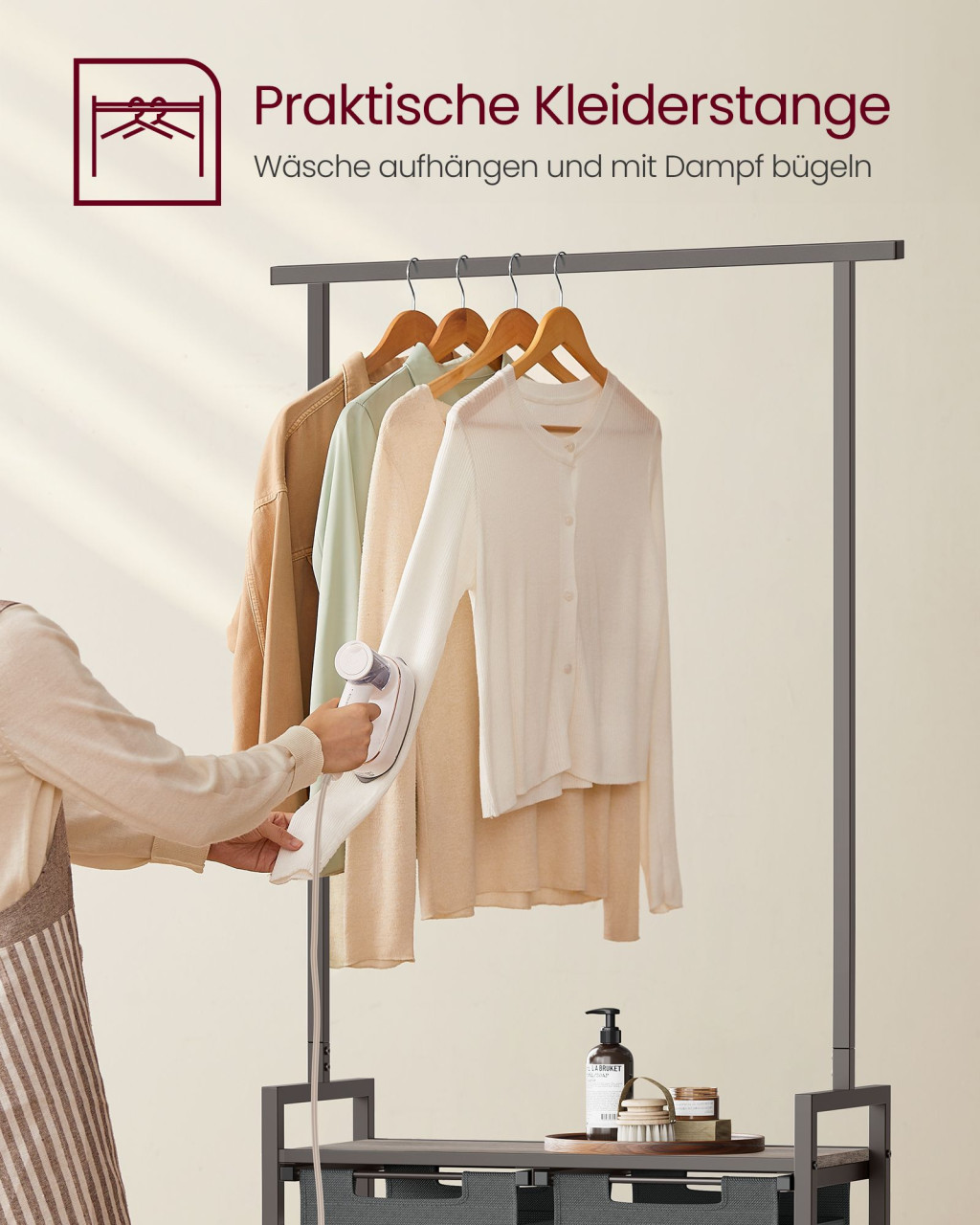 • Többfunkciós kialakítás: Ruhaszárító rúd és polc a maximális helykihasználásért