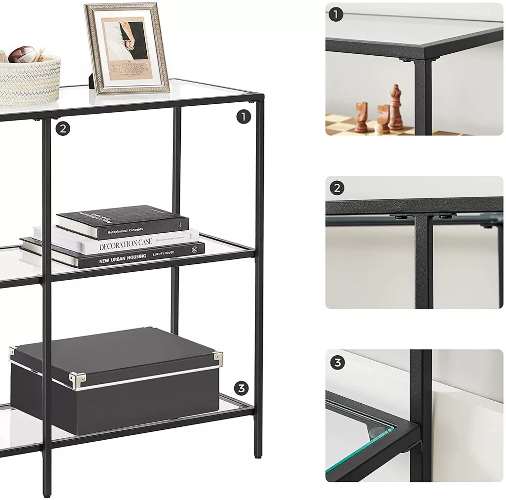 VASAGLE Modern Konzolasztal Edzett Üveg Polcokkal Fekete