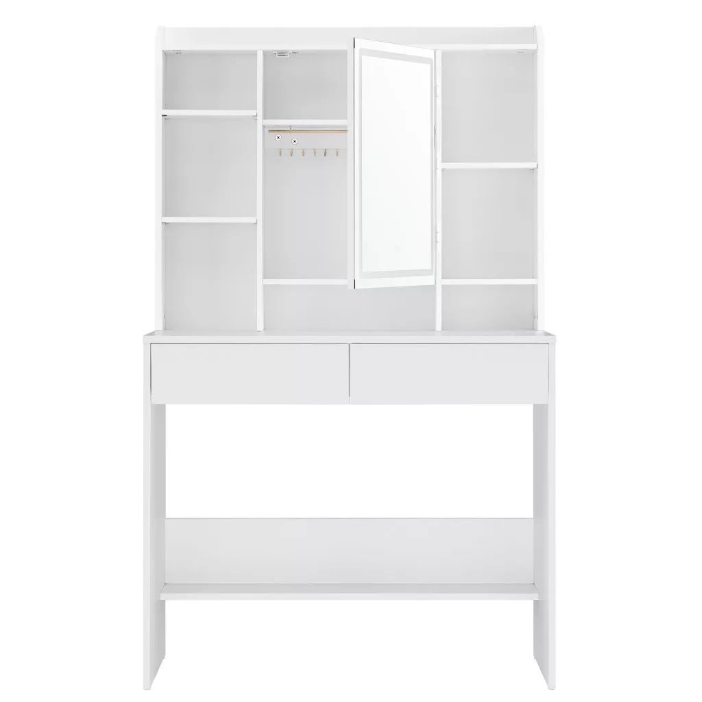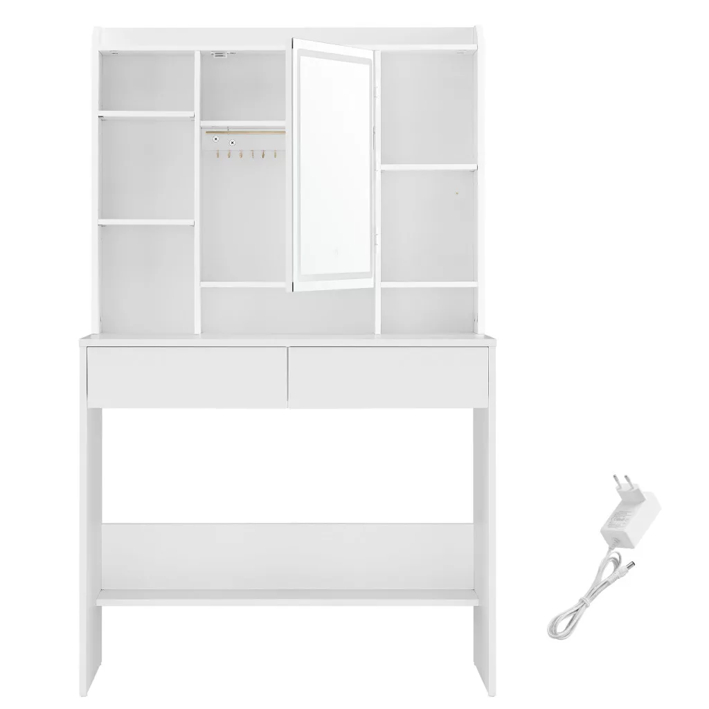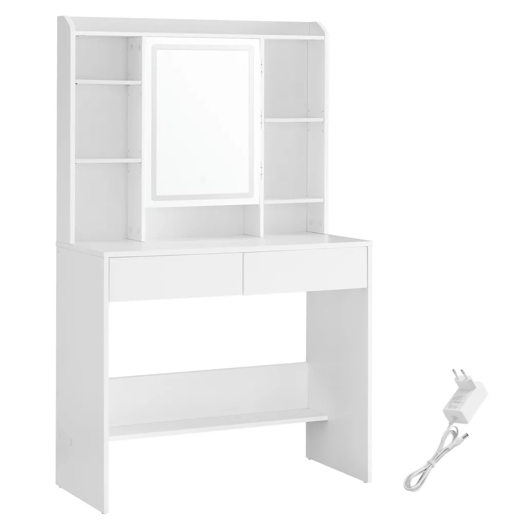 VASAGLE Modern LED Fésülködőasztal Állítható Polcokkal Fehér