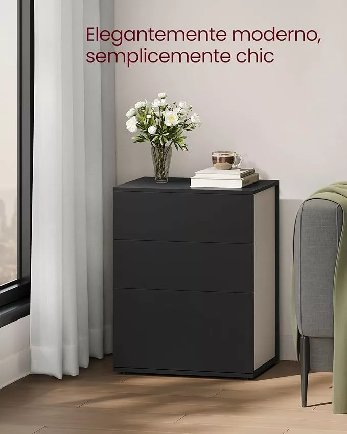 VASAGLE Modern Minimál Éjjeliszekrény 3 Fiókos Fekete-Cappuccino