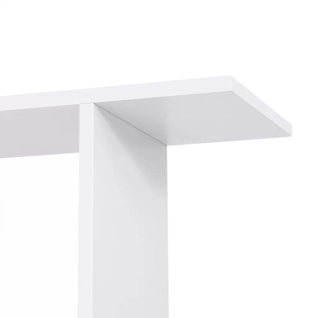 Elegáns, modern kialakítású, 6 szintes fehér könyvespolc, amely térelválasztóként is funkcionál, tökéletes megoldást nyújtva a tárolásra és a terek stílusos elválasztására.