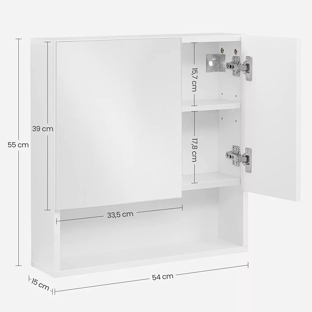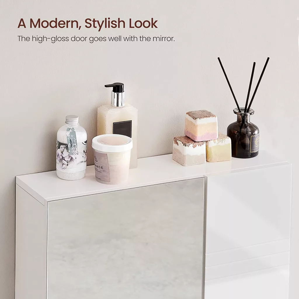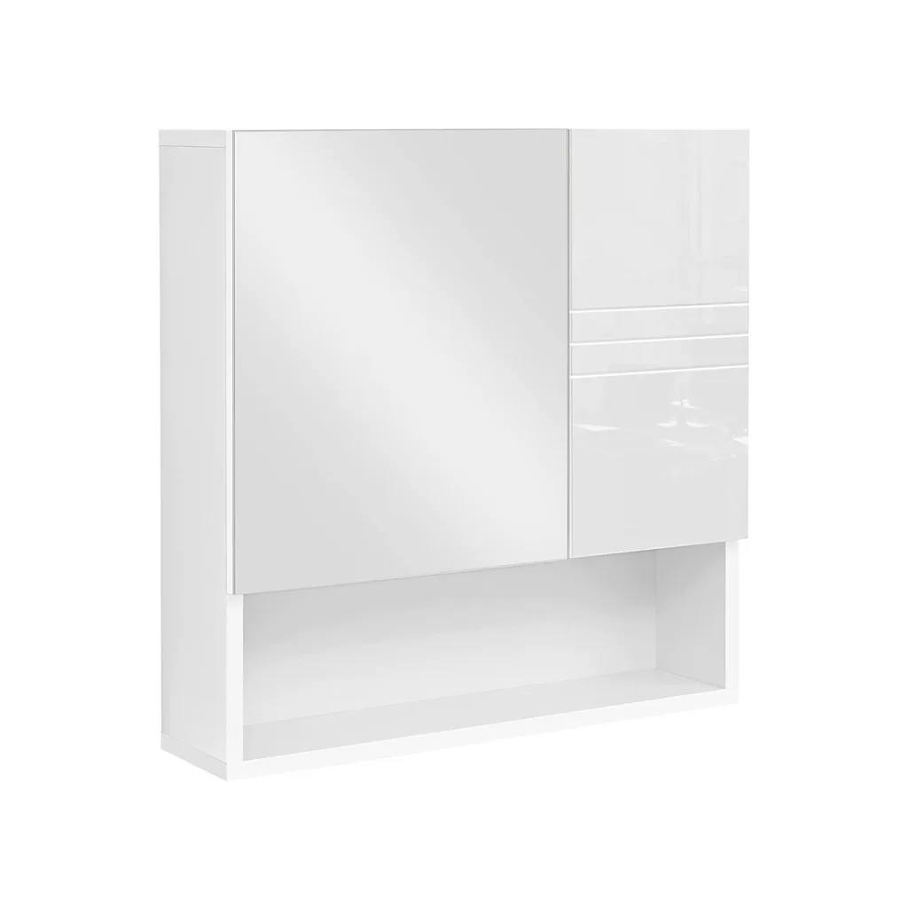 VASAGLE Modern Tükrös Fürdőszobai Fali Szekrény Állítható Polcokkal Magasfényű Fehér