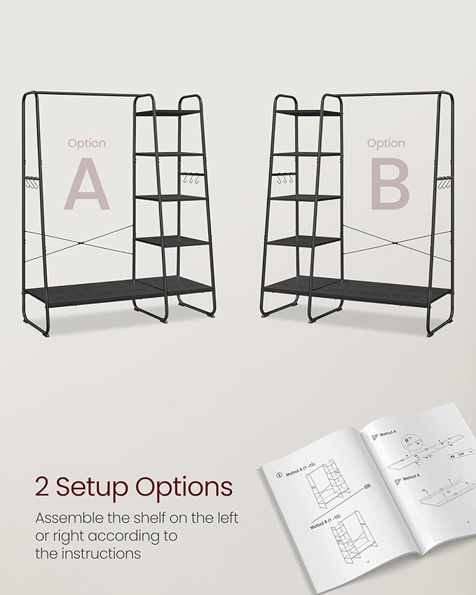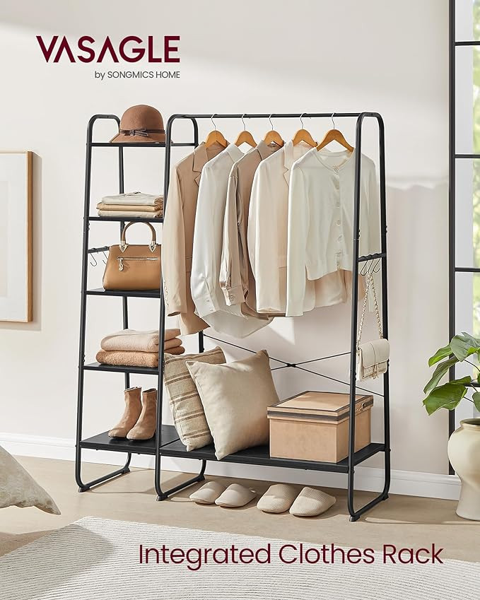 VASAGLE Multifunkciós Ruhaállvány 5-Szintes Tárolóval Fekete