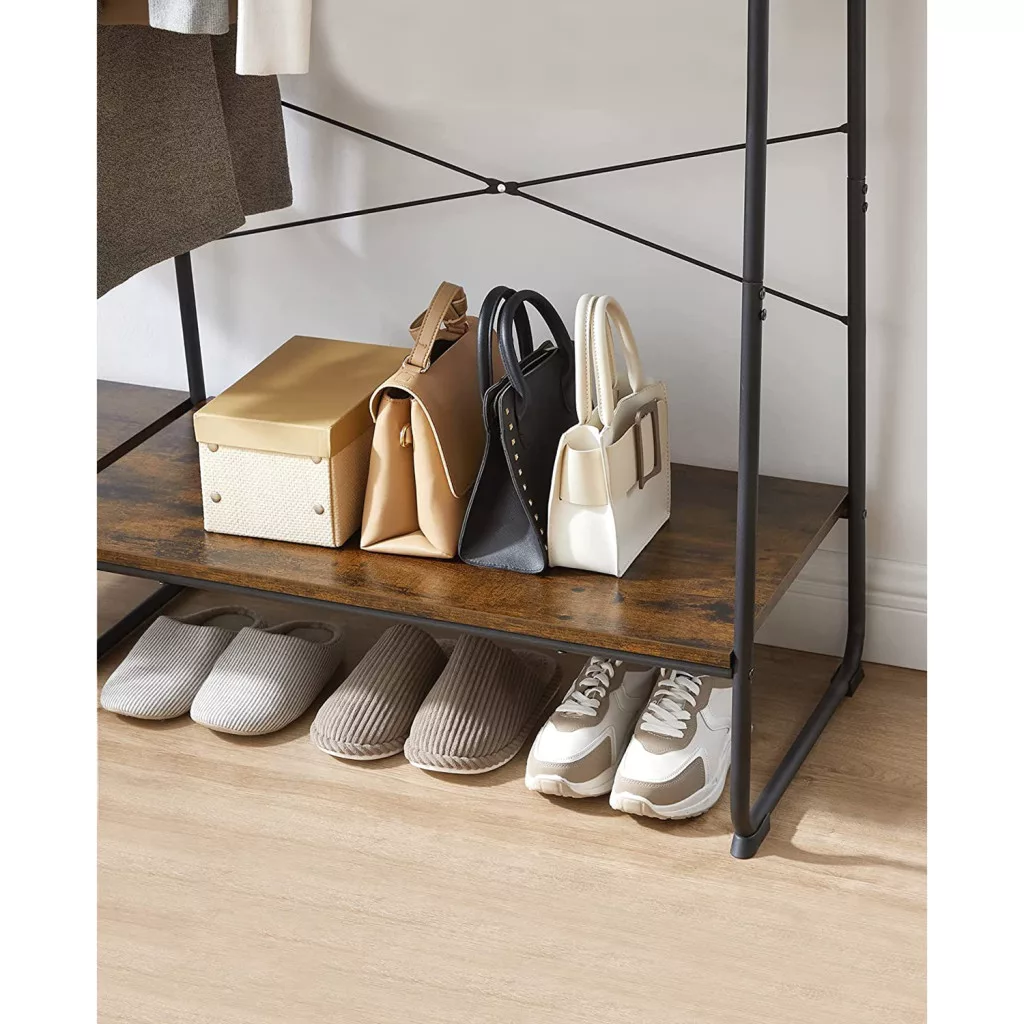 VASAGLE Multifunkciós Ruhaállvány Cipőtartóval Rusztikus Barna-Fekete