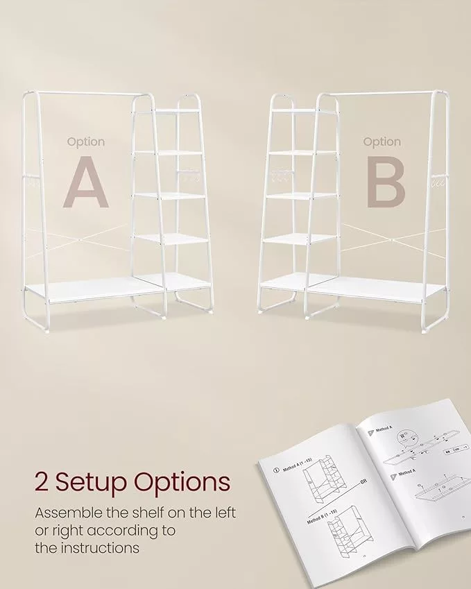 VASAGLE Multifunkciós Ruhaállvány Fehér Cipőtartóval és 5-szintes Tárolóval