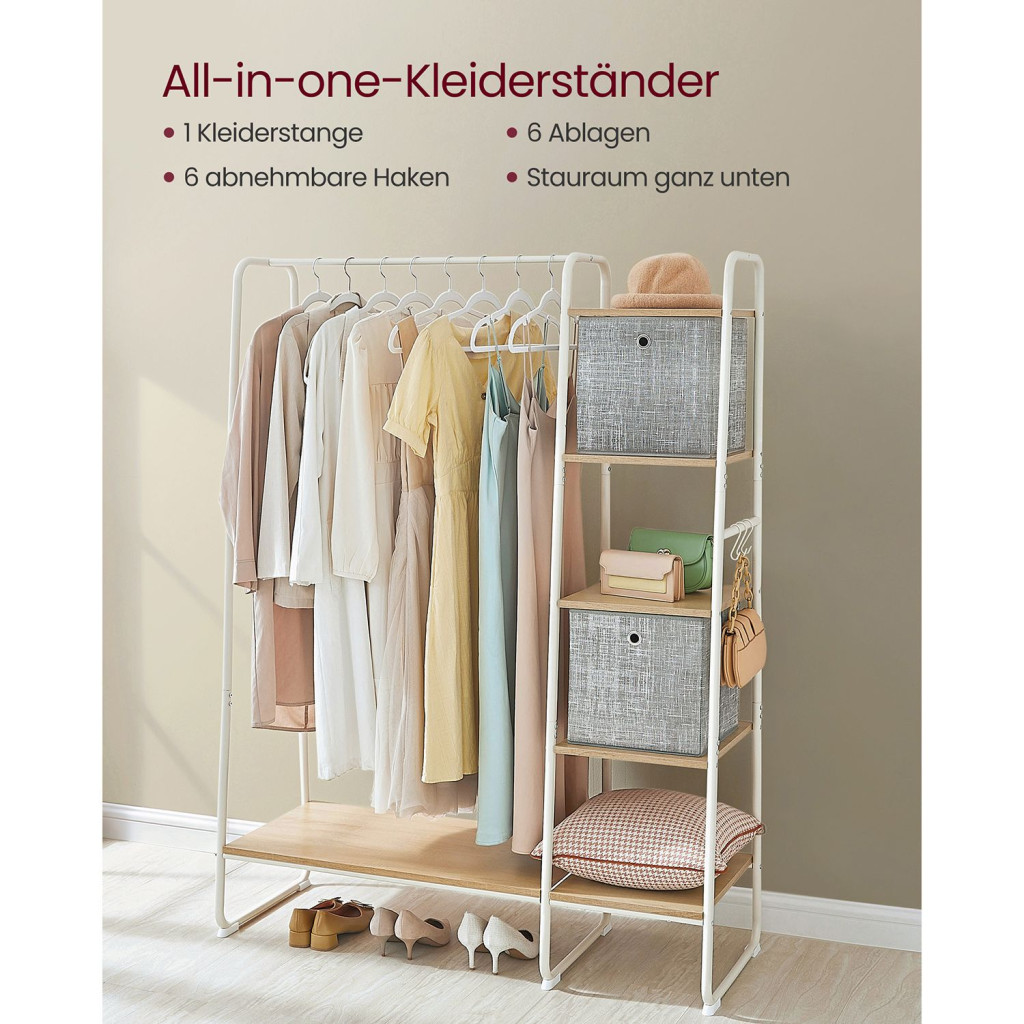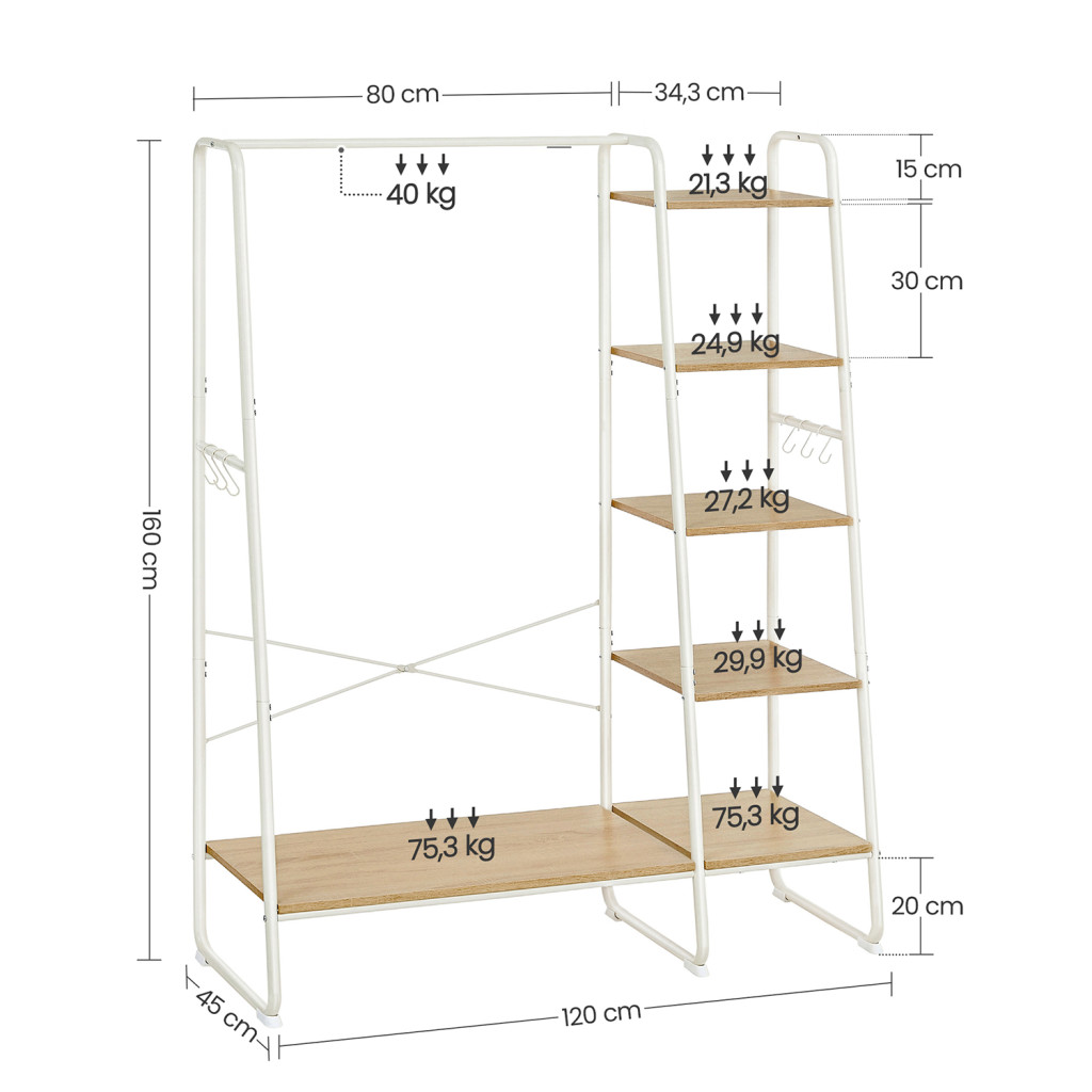 VASAGLE Multifunkciós Ruhaállvány Tölgy-Fehér Nyitott Gardrób