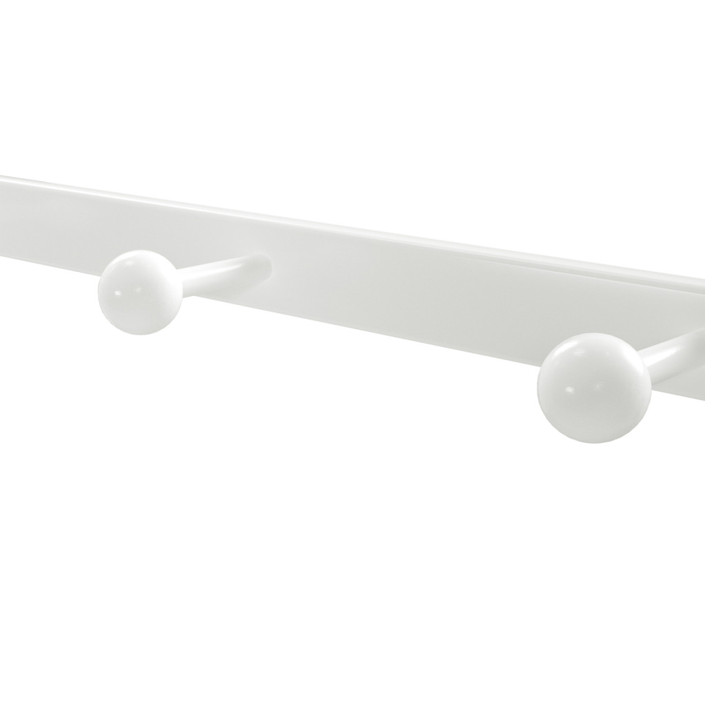 A robusztus fém váz és megerősített rögzítési rendszer garantálja a stabil használatot, míg az 5 akasztó és a praktikus ruhaakasztó rúd minden tárolási igényt kielégít. A polc 15 kg, az akasztók egyenként 3 kg, a rúd pedig 10 kg teherbírással rendelkezik.