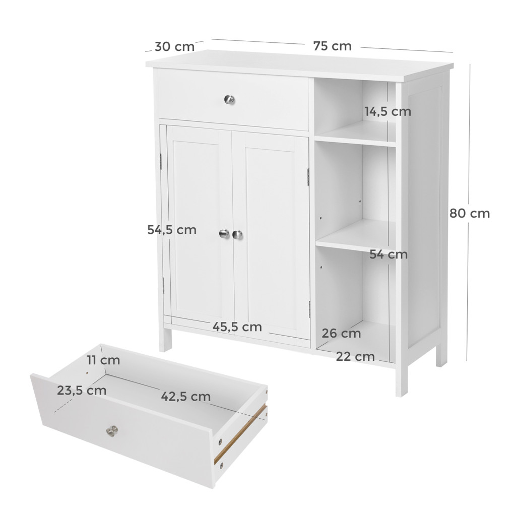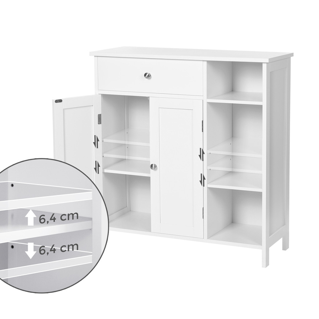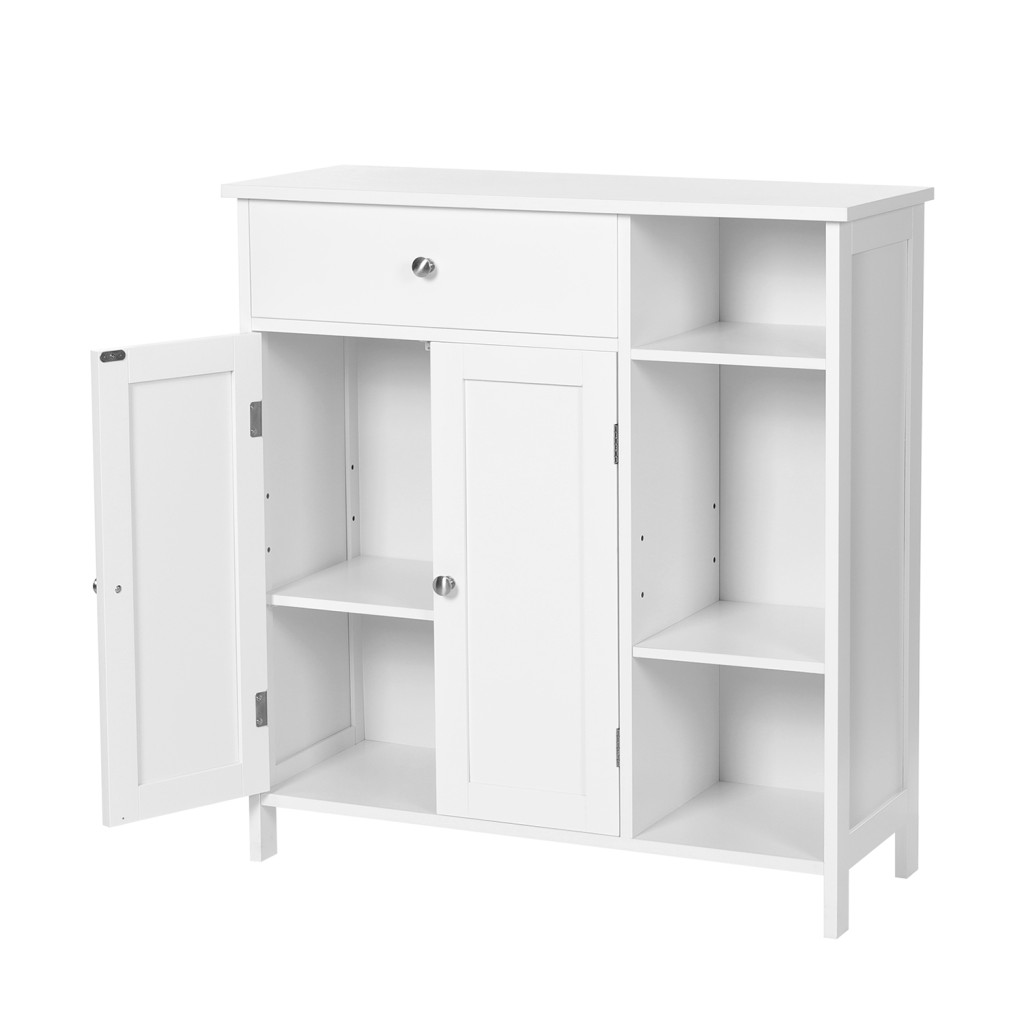 VASAGLE Nordic Fürdőszobai Tárolószekrény Matt Fehér MDF Állószekrény