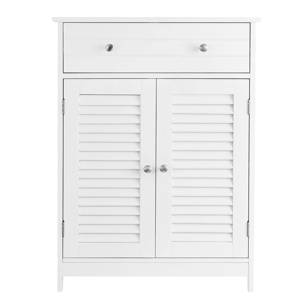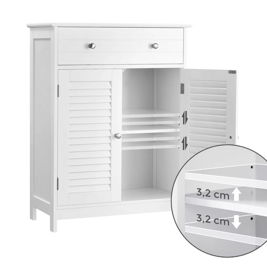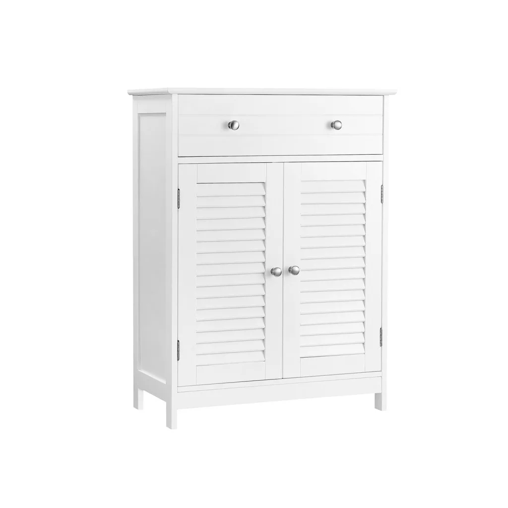 VASAGLE Nordic Fürdőszobai Tárolószekrény Zsalus Ajtókkal Matt Fehér