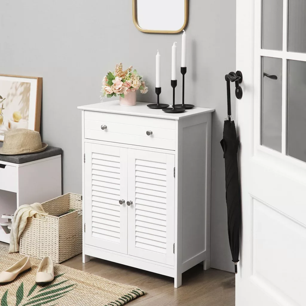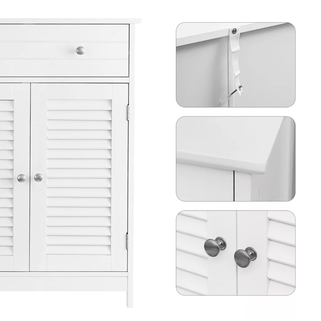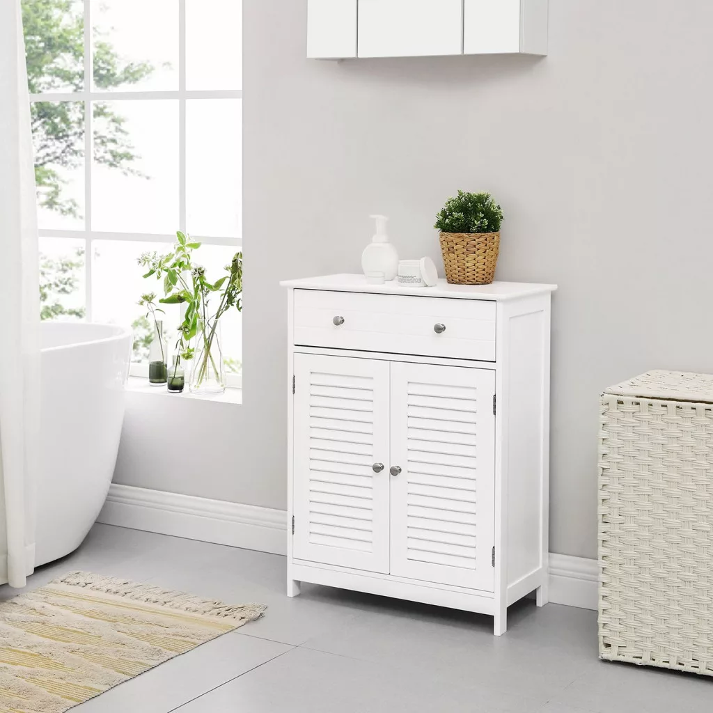 VASAGLE Nordic Fürdőszobai Tárolószekrény Zsalus Ajtókkal Matt Fehér
