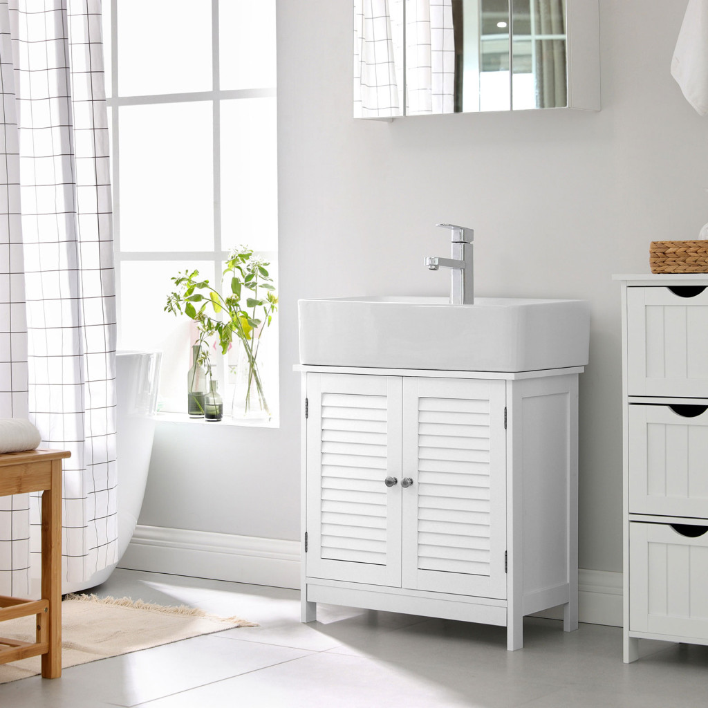 VASAGLE Nordic Mosdószekrény Matt Fehér Zsalus Ajtókkal