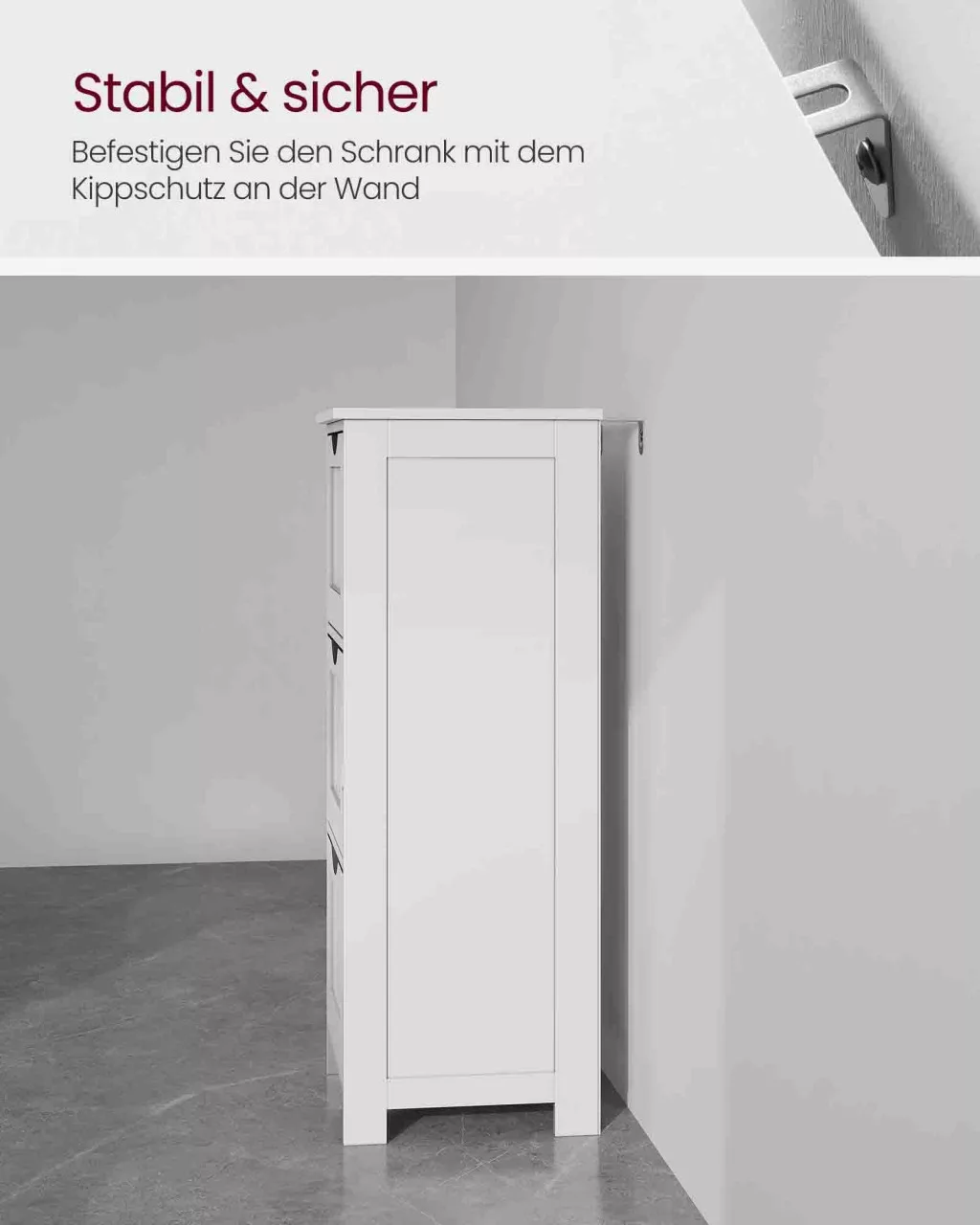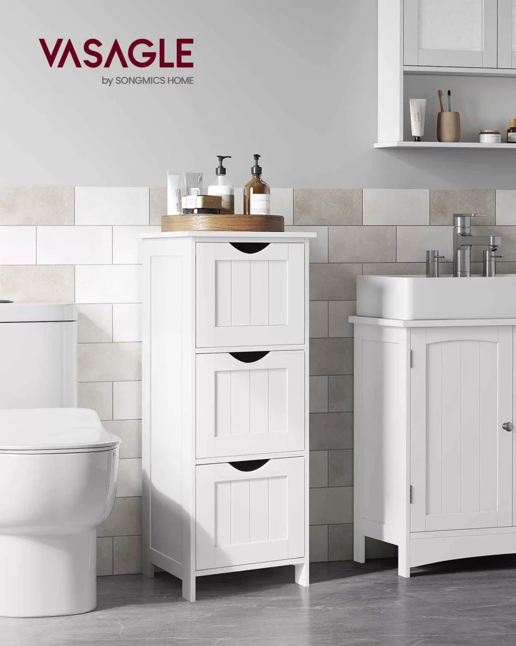 VASAGLE Nordic Slim Fürdőszobai Tárolószekrény 3 Fiókos Matt Fehér