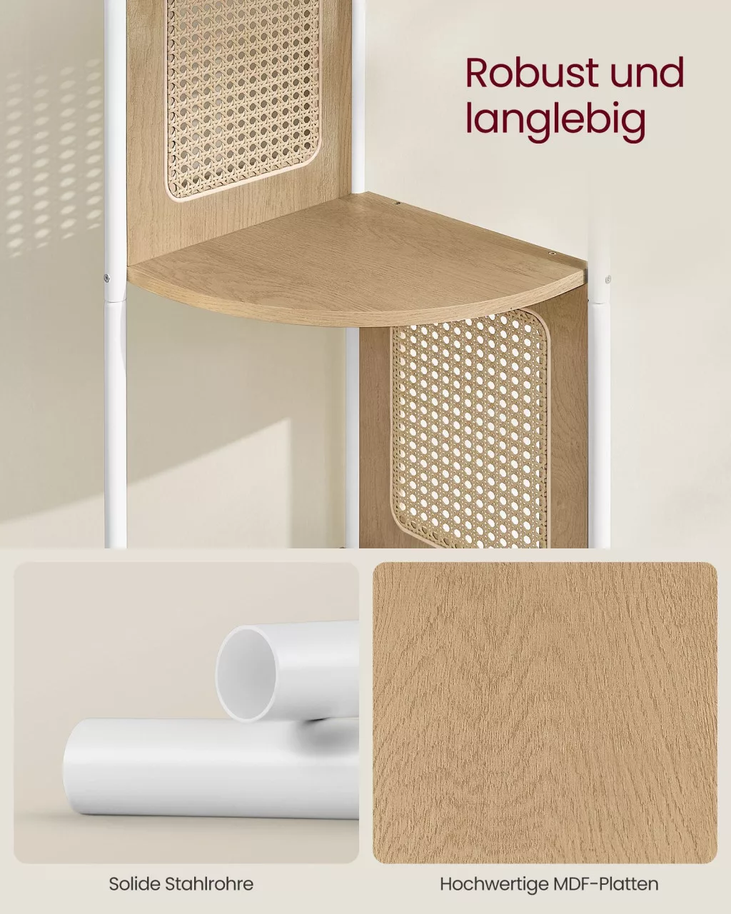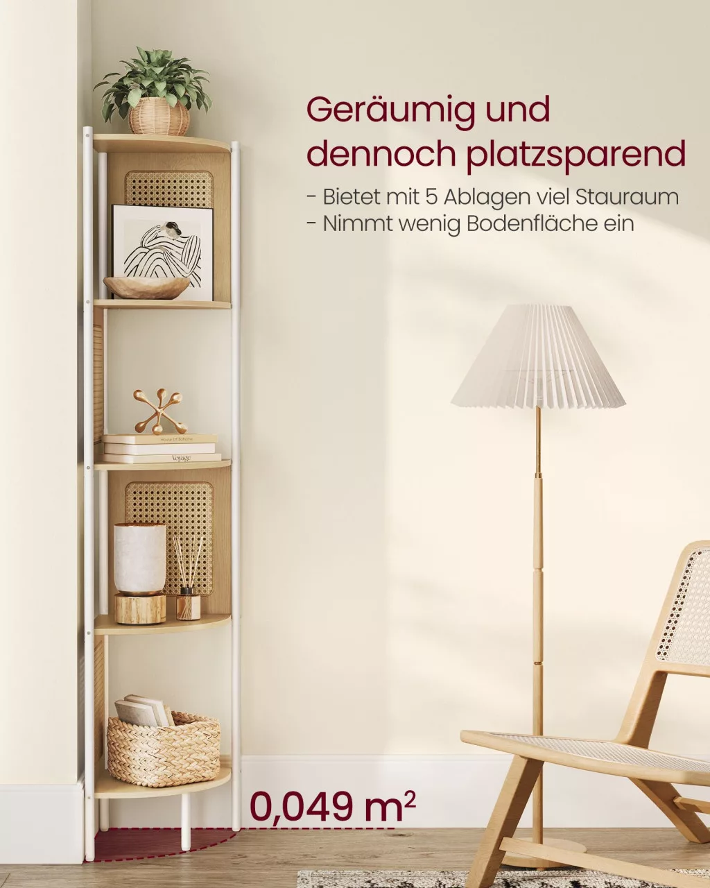 VASAGLE Rattan 5 Szintes Sarokpolc Tölgy Bézs Fém Vázzal