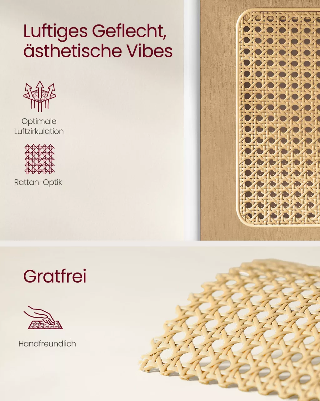• Rattan oldalpanelek: Természetes, skandináv stílusú megjelenést biztosít