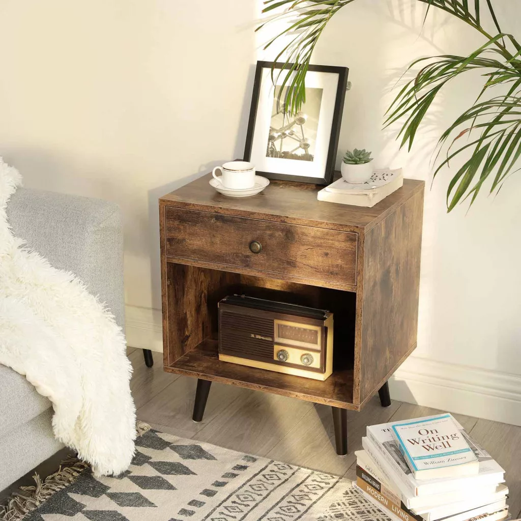 VASAGLE Retro Éjjeliszekrény Fenyőfa Lábakkal Rusztikus Barna