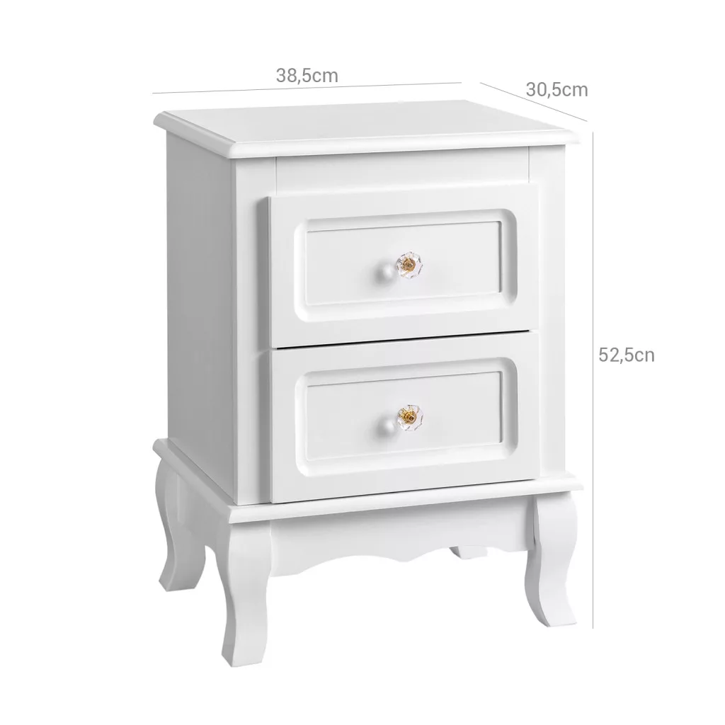 VASAGLE Romantika Fehér Éjjeliszekrény Szett Fenyő Lábakkal
