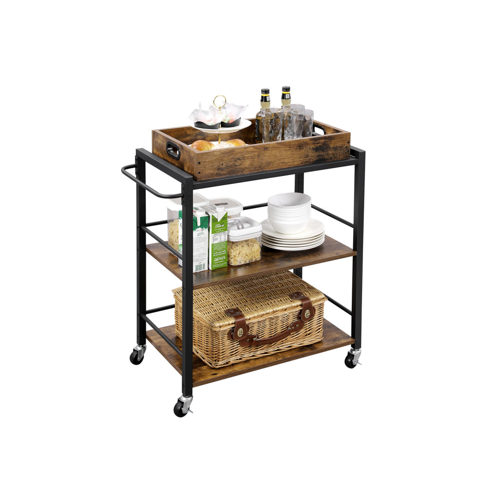 VASAGLE Rusztikus Barna Konyhai Zsúrkocsi Levehető Tálcával