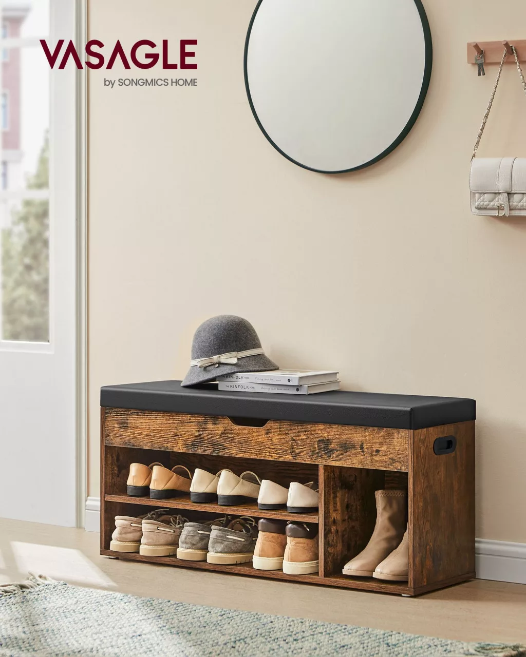 VASAGLE Rusztikus Cipőspad Párnázott Üléssel és Tárolóval